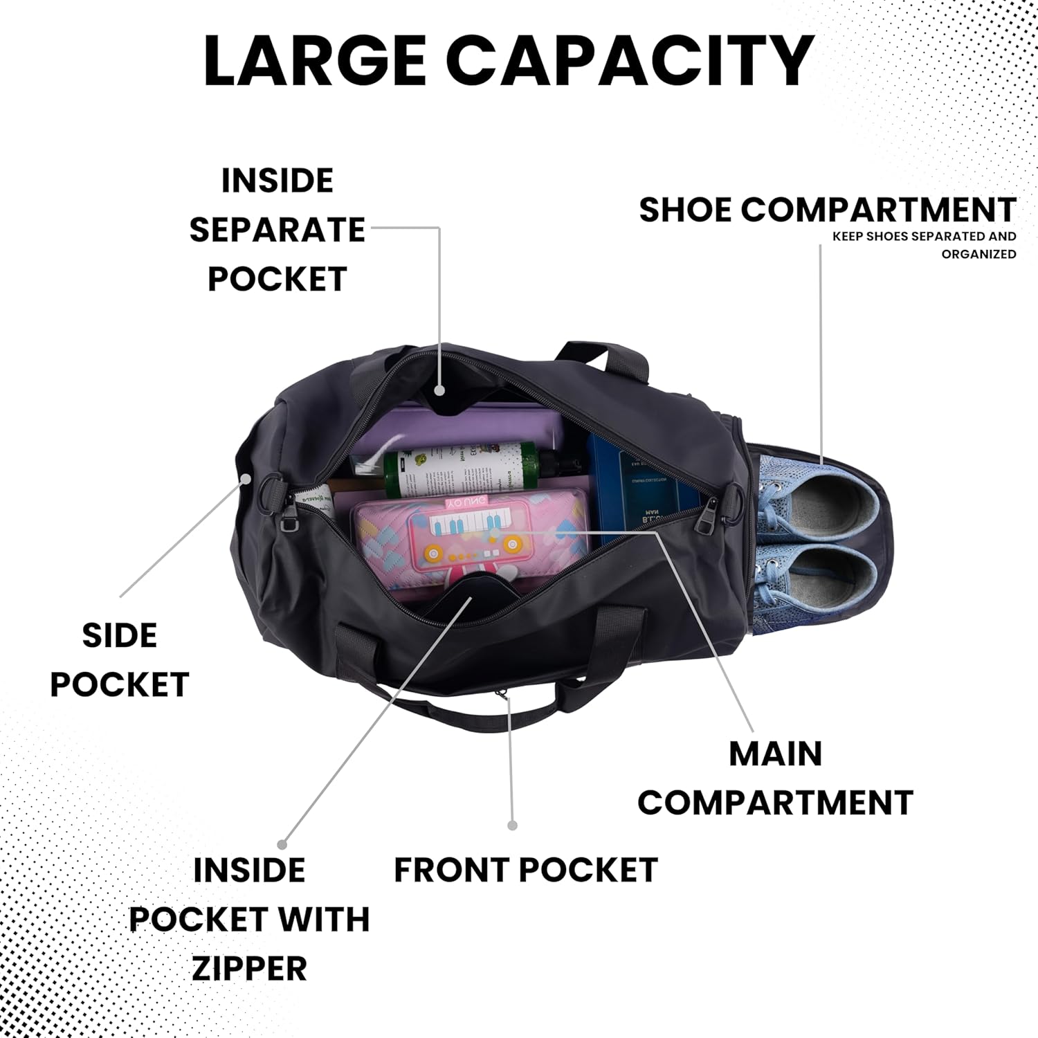 SPECIAL FEATURES FOR MAXIMUM FUNCTIONALITY – Includes a ventilated shoe compartment to separate dirty footwear, water-resistant exterior, 8+ smart storage pockets, adjustable shoulder strap, padded carry handles, inner zipper pouch for valuables, and a foldable, cabin-size design—perfect for gym, sports, travel, and daily use.