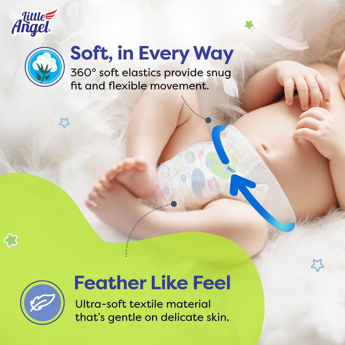 Up to 12 Hours Protection: Little Angel Extra Dry Diaper Pants offer absorbent protection and softness for your baby’s skin and breathability to keep it clean and healthy. With a secure fit and long-lasting protection, these pants help eliminate leaks for up to 12 hours.