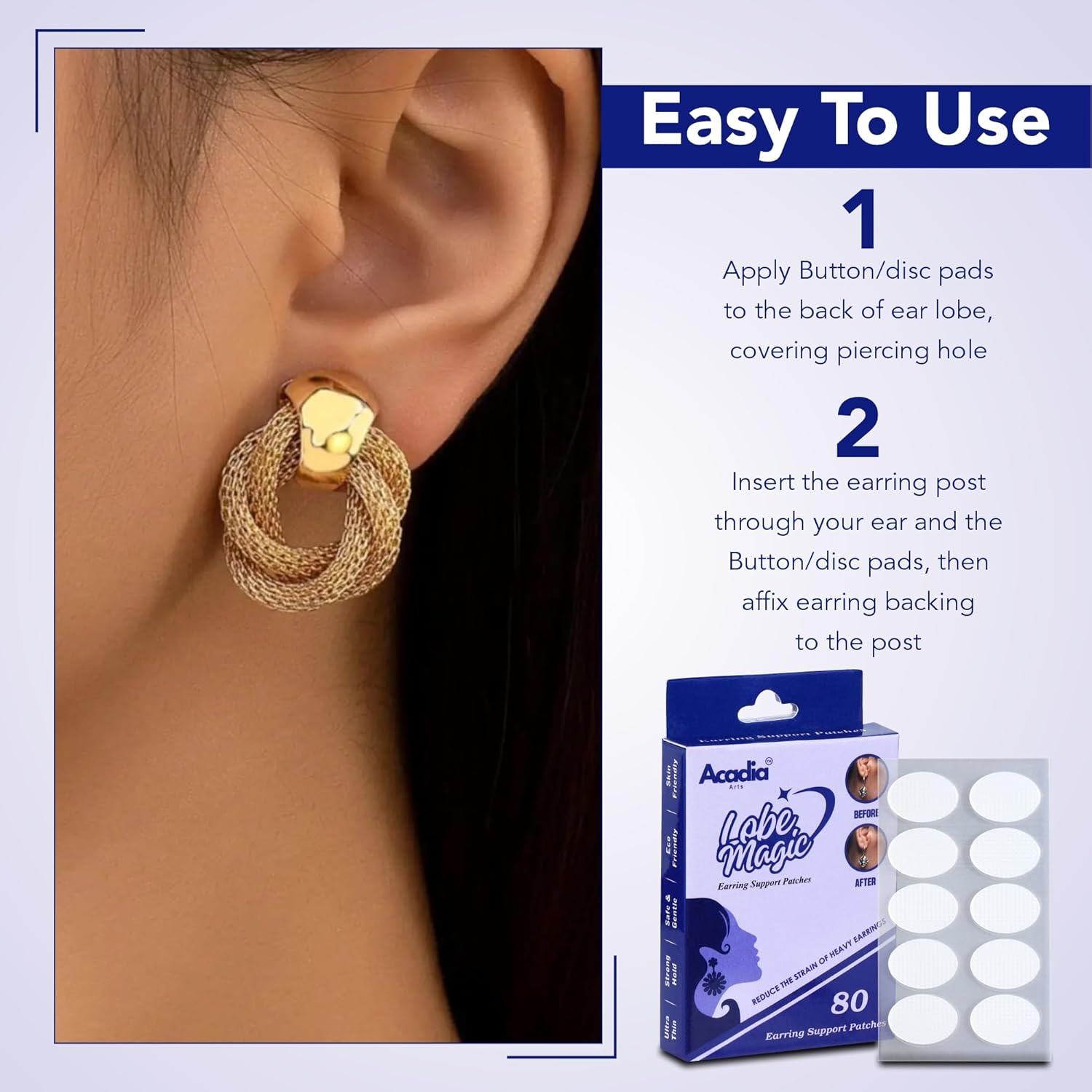 🎁 VALUE PACK – 100 PATCHES (80 + 20 FREE) : Includes 100 clear earring support patches to last for months. A must-have ear care product for women who wear heavy or statement earrings regularly.