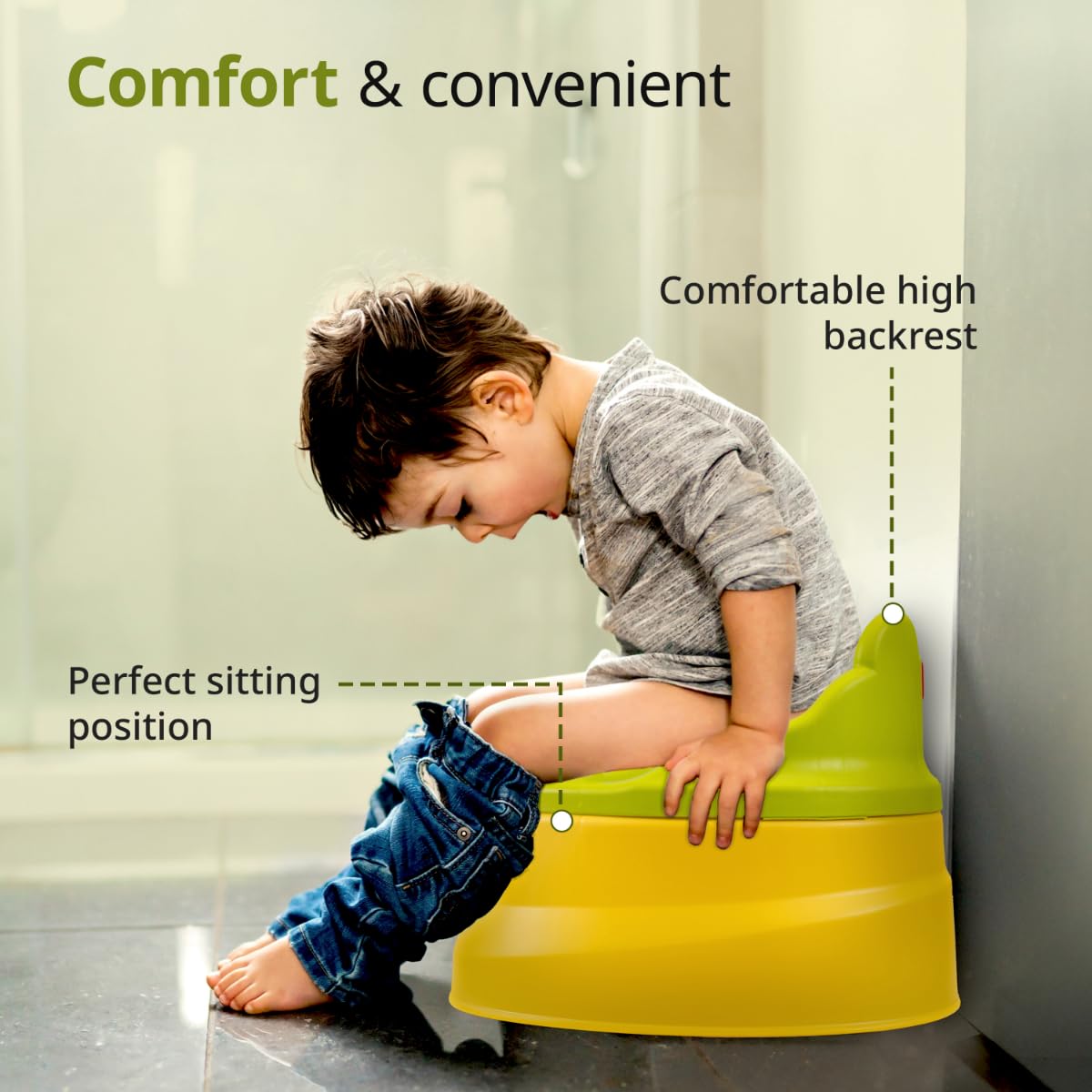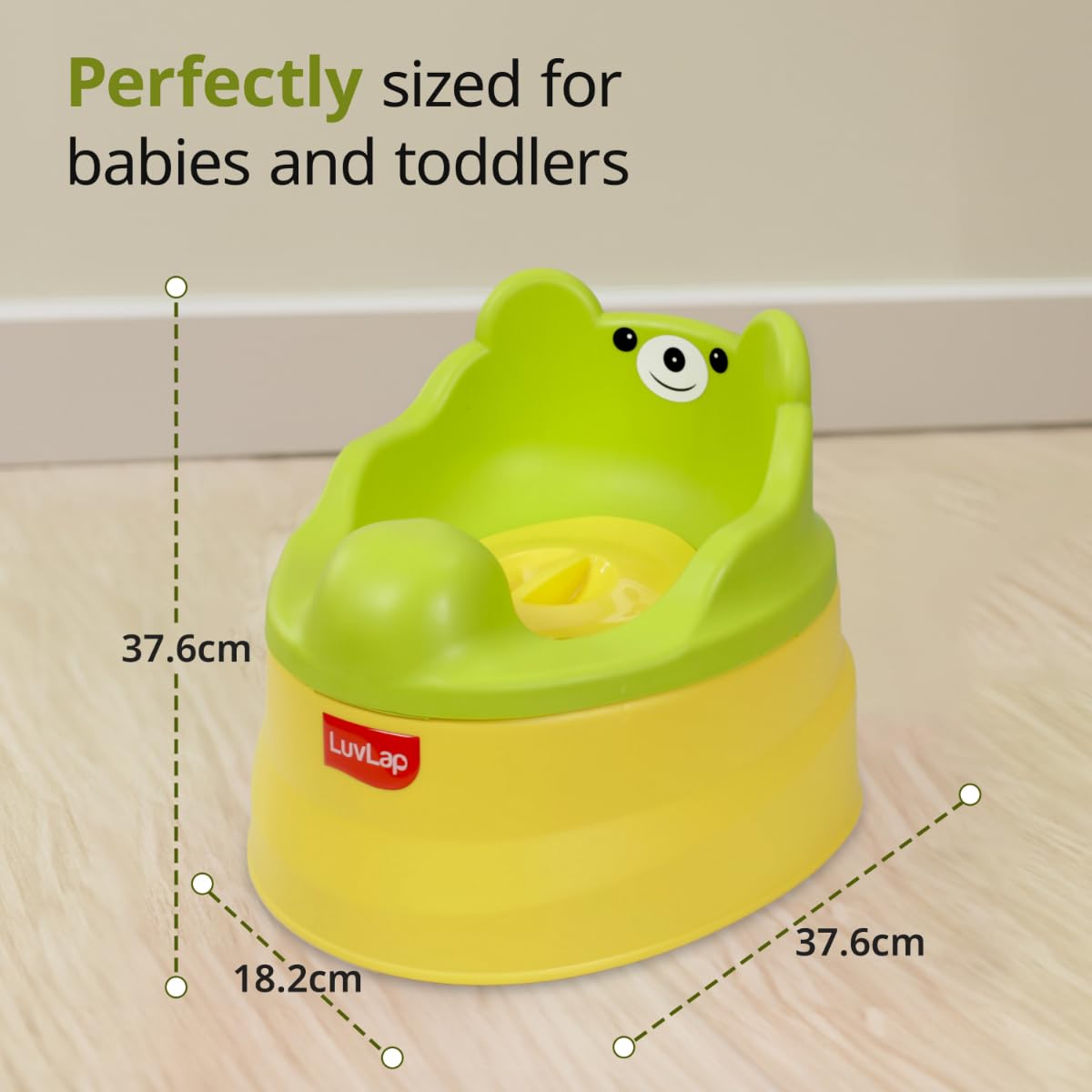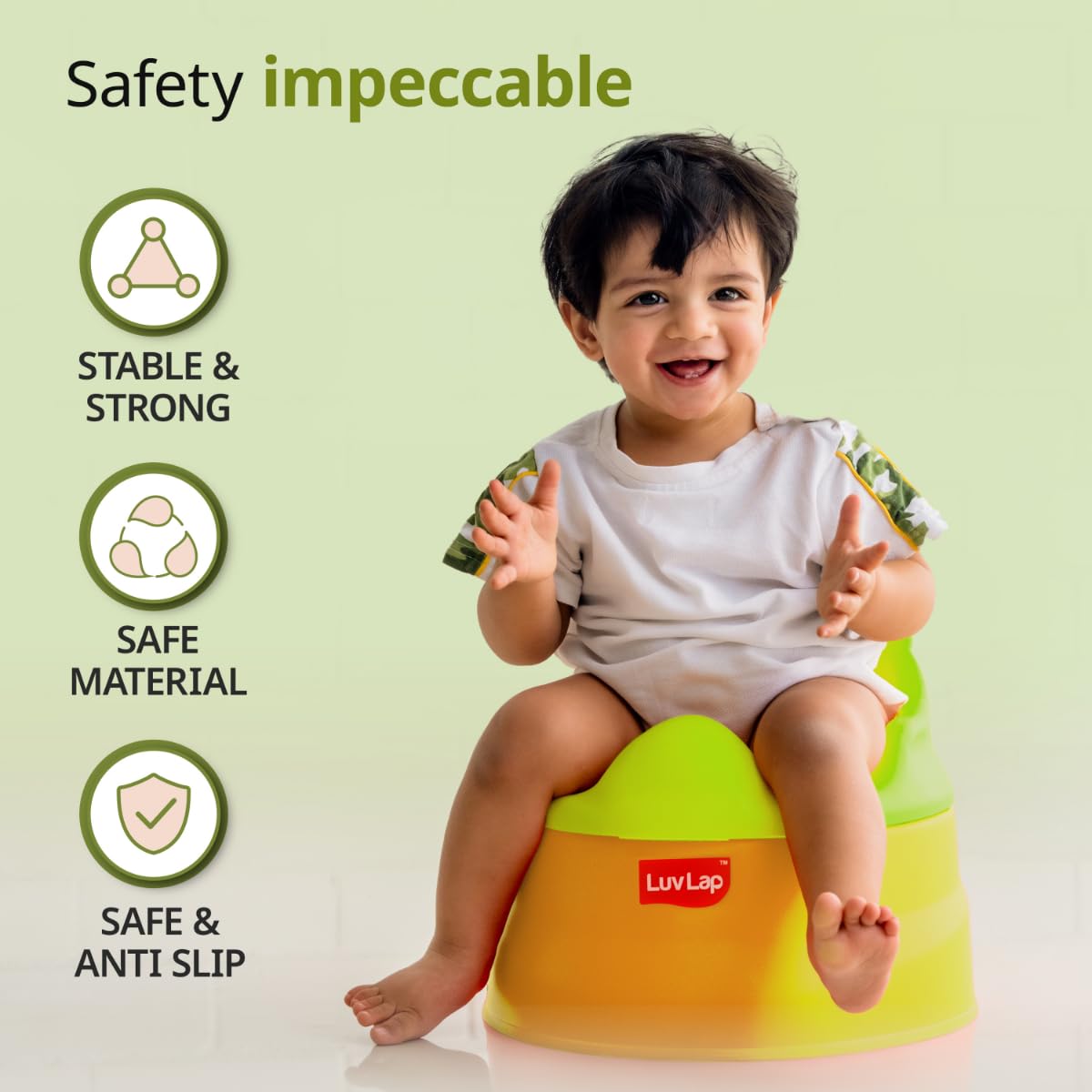 LuvLap Adaptable 2 in 1 Potty Training Seat is your child’s essential companion in potty training. Designed with safety, comfort, and functionality in mind, this potty trainer is certified to meet European Standards EN 71, ensuring the highest quality and safety. This is ideal for 12 month + toddlers. With its smooth-edged ergonomic seat and high backrest, it provides optimal comfort and support, helping your child maintain proper posture and preventing them from toppling over during use. The upper plate rim can be separated from the inner bowl, allowing it to be used as a toilet seat on an adult toilet. This feature facilitates an easy transition from the potty to the toilet, promoting independence and confidence in your child’s bathroom routine. Hygiene is paramount, which is why this potty training seat is designed with soft curves and detachable parts for easy washing and cleaning. The removable lid and potty bowl make cleanup a breeze, ensuring a hygienic environment for your child’s potty training sessions. Crafted from durable and non-toxic plastic material, this potty training seat is built to last. It is lightweight and compact.