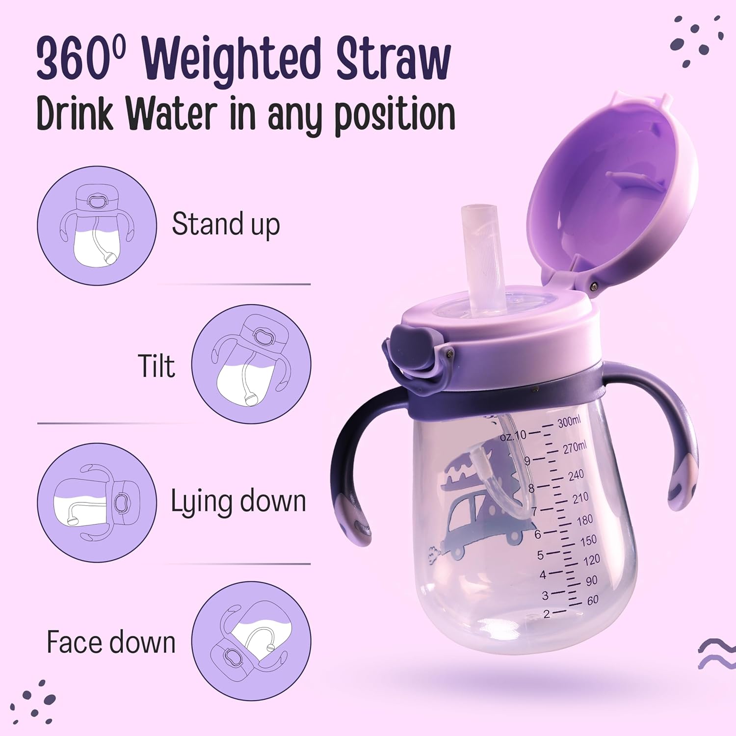 LuvLap Baby Bite Resistant Soft Silicone Straw Sipper Cup with Handle, with Weighted Straw, Sippy Cup with Anti Spill Lock, BPA Free, 6m+, 300 ml, Purple