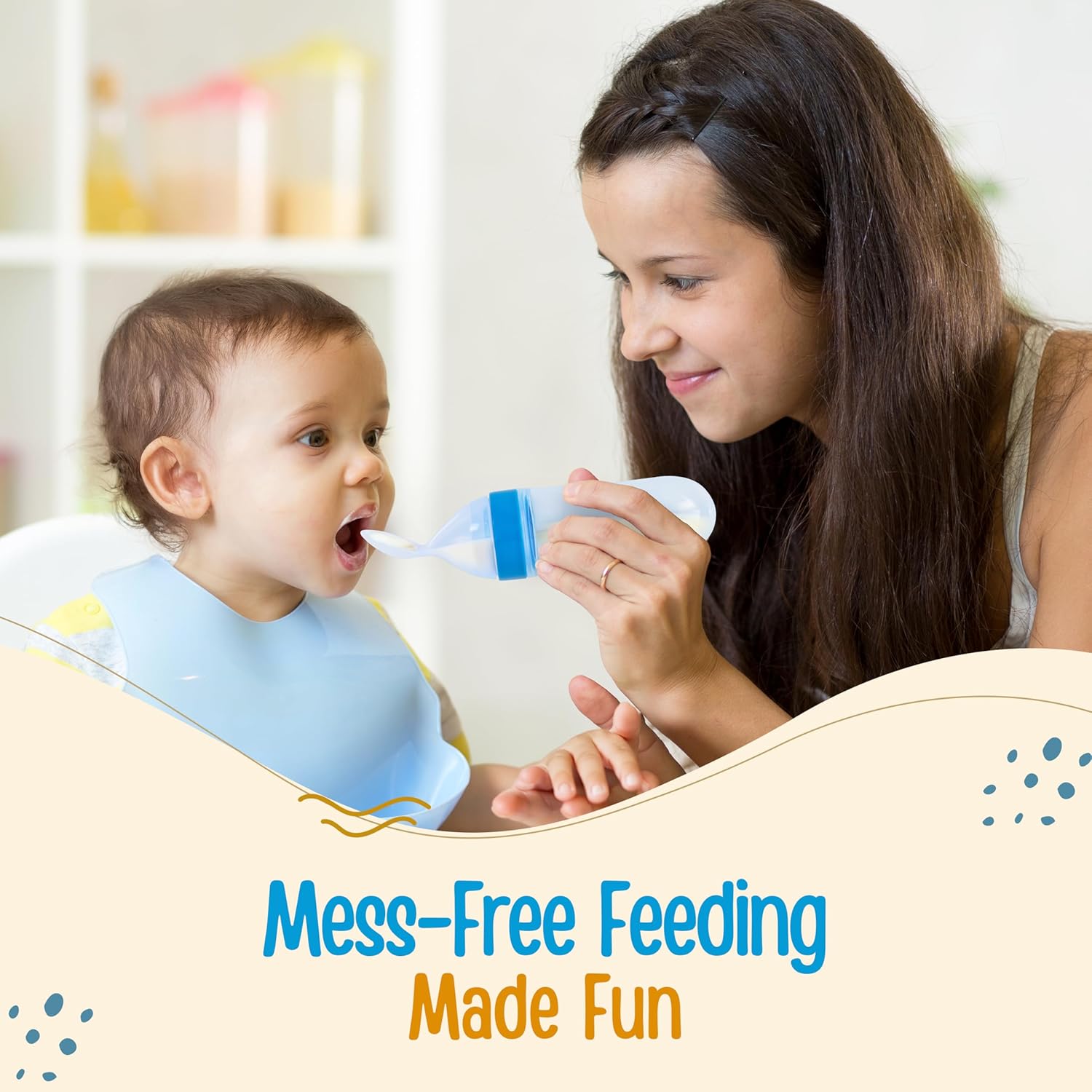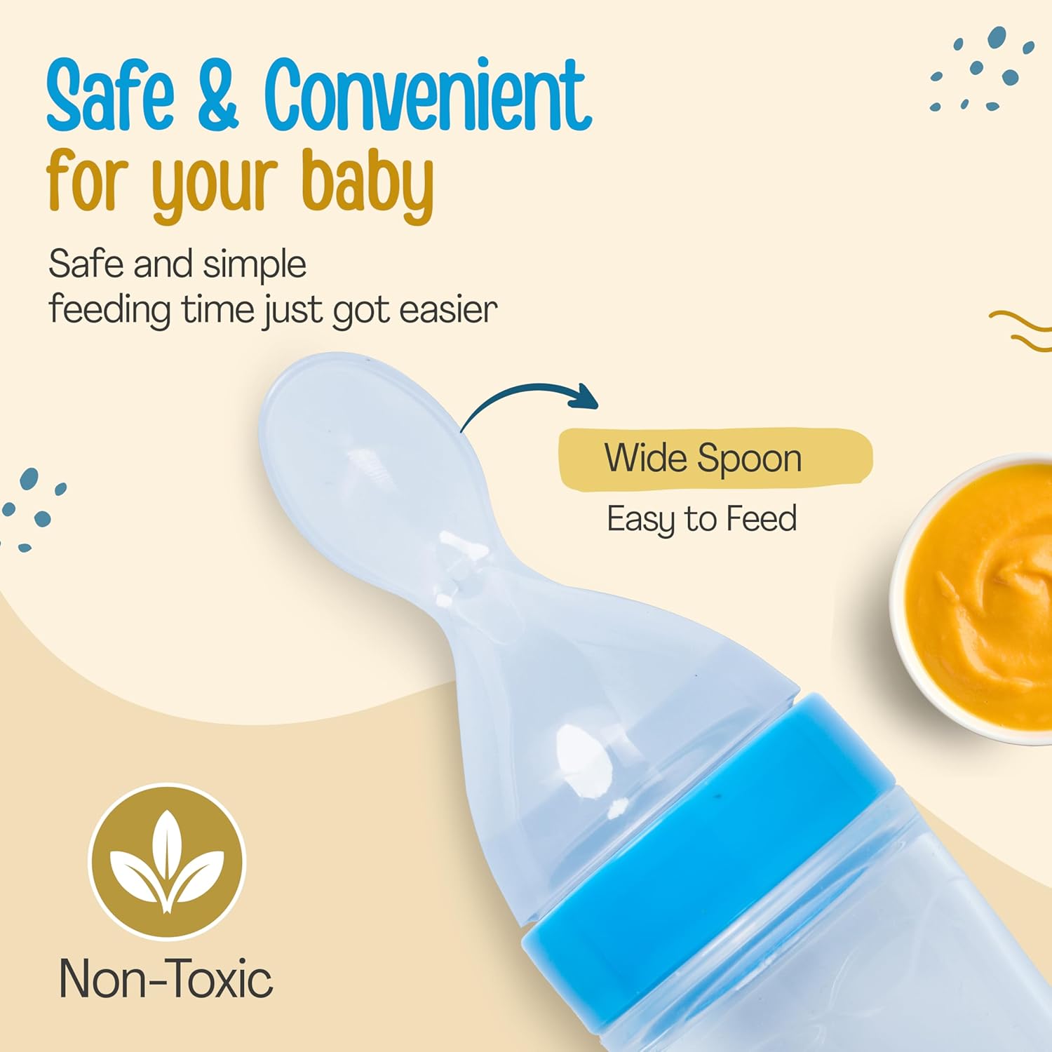 LuvLap Feeding Spoon with Squeezy Food Grade Silicone Feeder Bottle, for Infant Baby, 90ml, BPA Free