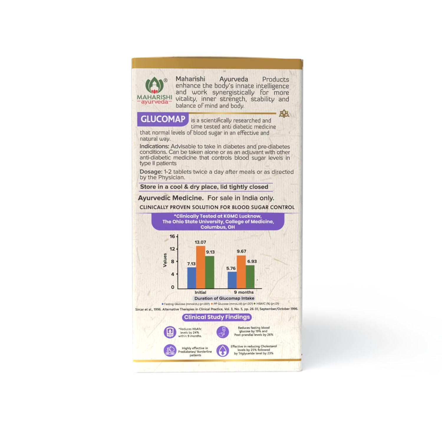 MADE FROM POTENT HERBS Maharishi Ayurveda Glucomap is a scientifically tested and validated formulation for Diabetes Management. It has been clinically tested at KGMC Lucknow & AIIMS Delhi.