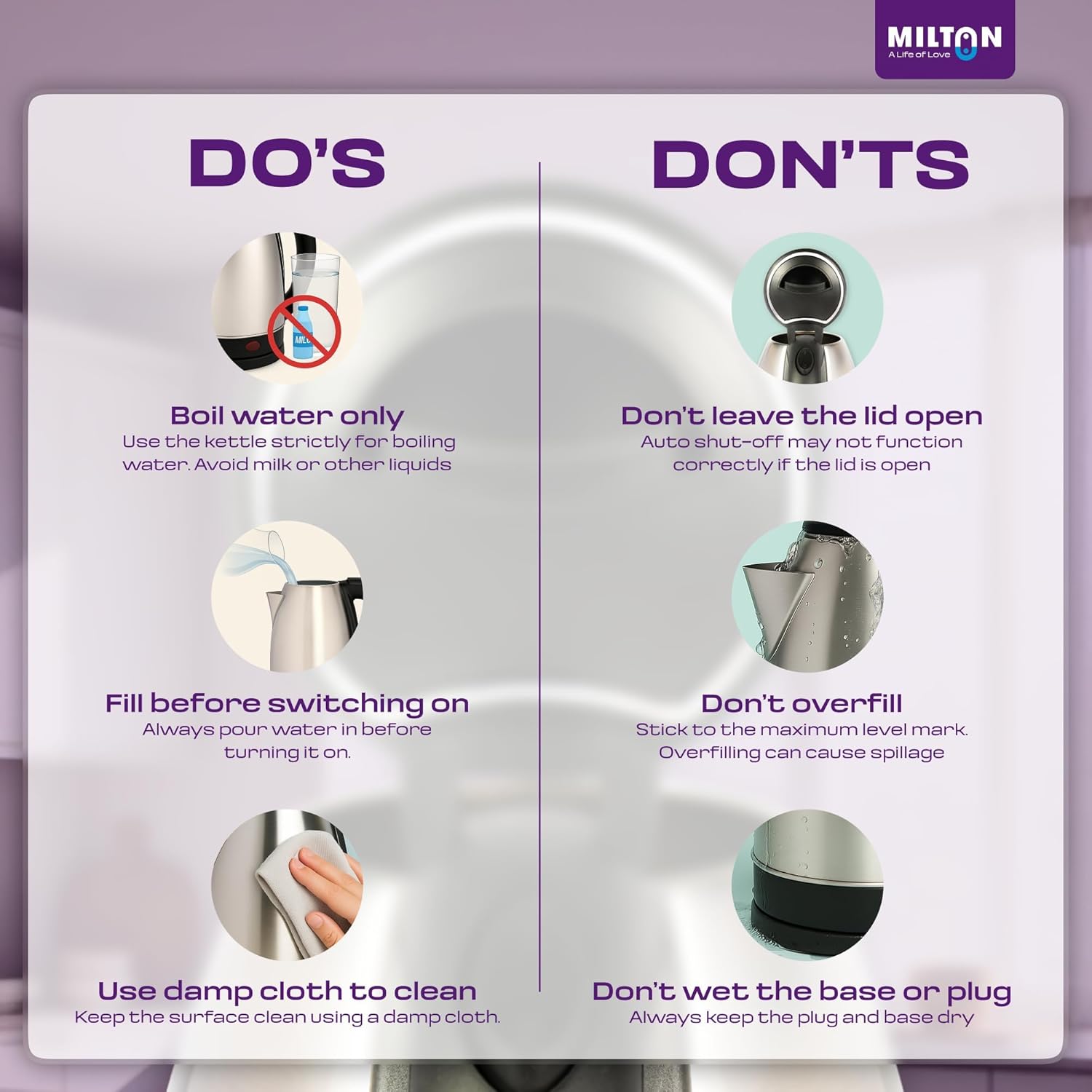 🔹 Fast Boiling Technology – Efficient Water Kettle Electric Enjoy rapid boiling with this time-saving water kettle electric. Perfect for busy mornings or travel, this Milton electric kettle delivers speed without compromising on quality.