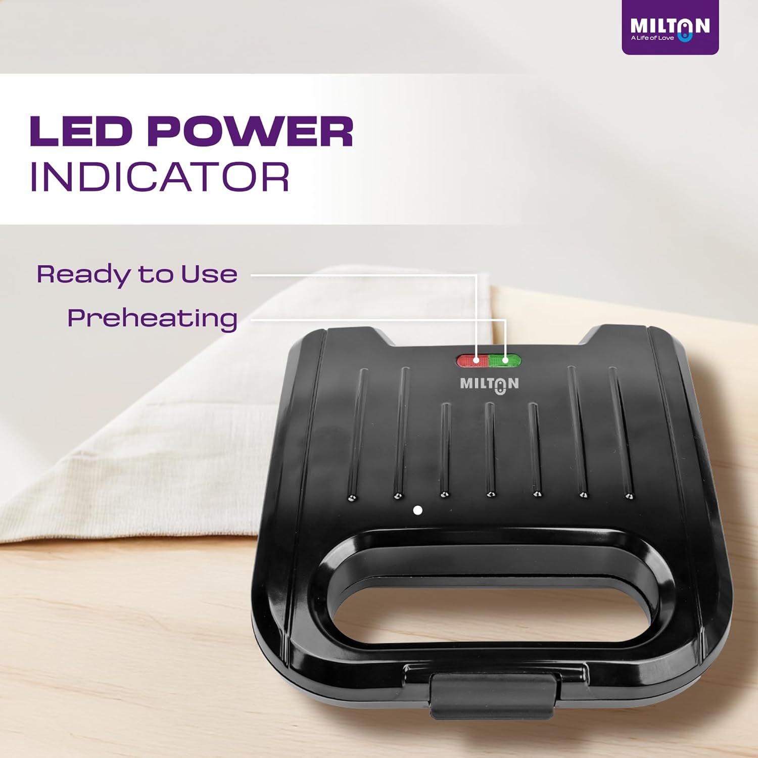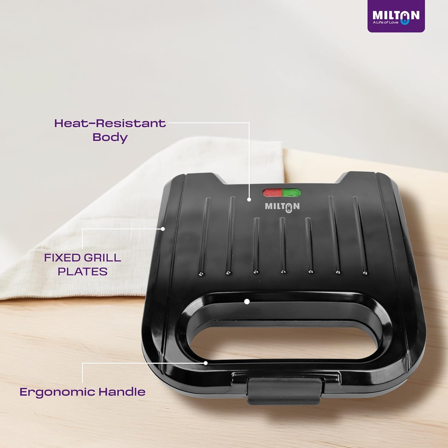 Milton Royal Express 800W Griller Sandwich Maker & Toaster | Auto Cut Off | Non-Stick Fixed Grill Plates | Easy Clean | Power Indicators | 1 year Manufacturer Warranty – Black