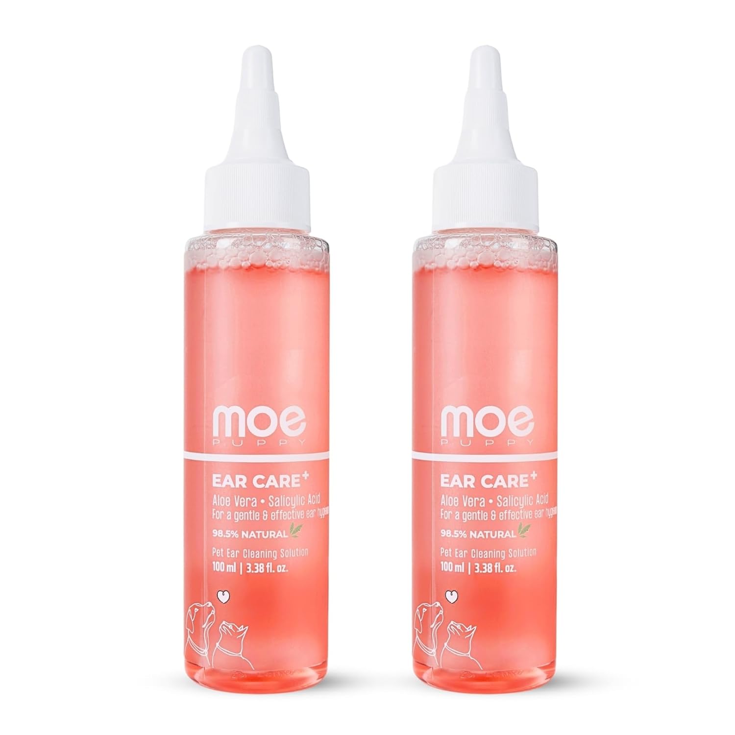 Moe Puppy Ear Care+ | Ear Cleaning Solution for Dogs and Cats | Prevents Infections, Soothes Itching, Removes Wax, Eliminates Ear Odour | Non-Irritating Dog Ear Cleanser | 100ml (Pack of 2)