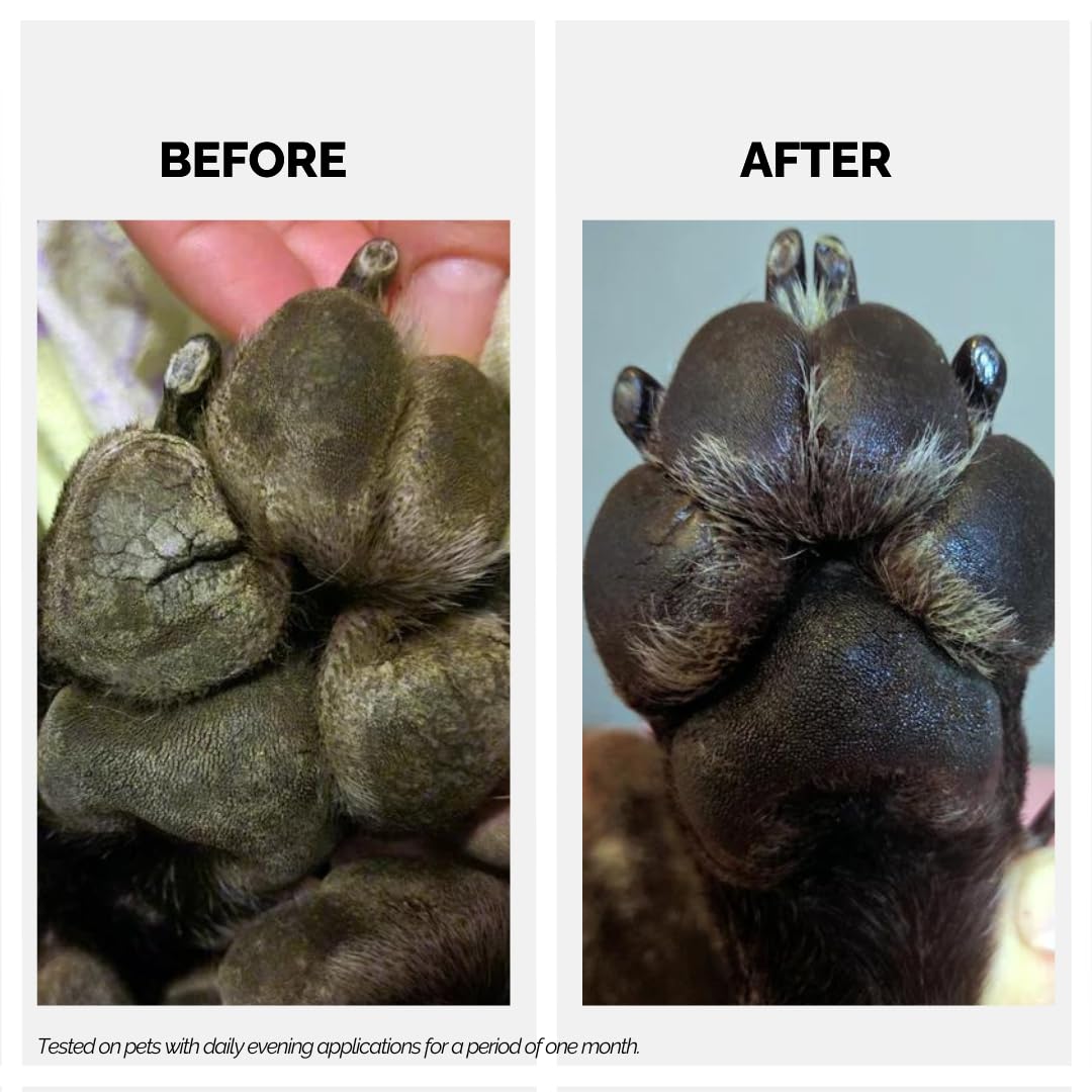 Protective barrier with Beeswax and Candelilla Wax: Beeswax and Candelilla Wax create a protective barrier on the paw pads, shielding them from further damage and providing added moisture retention.