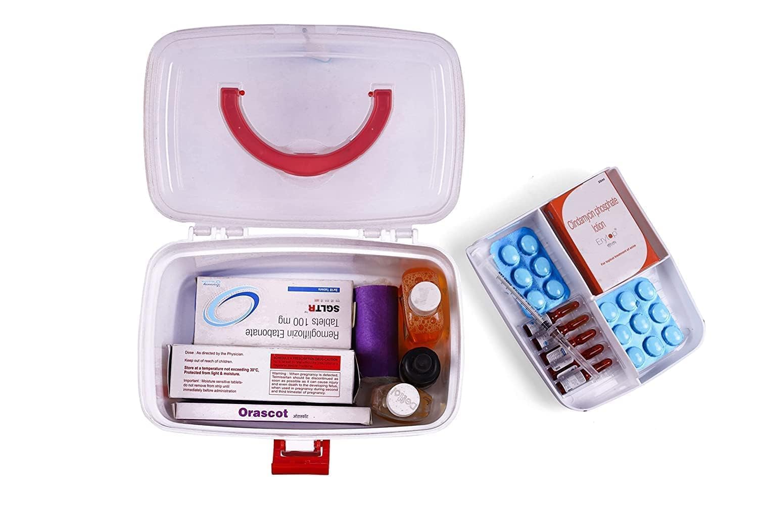 MONIT Plastic Rectangular Medicine Box For Medical Supplies, First Aid Box, and Multi-Purpose Utility Storage Solution With Handle