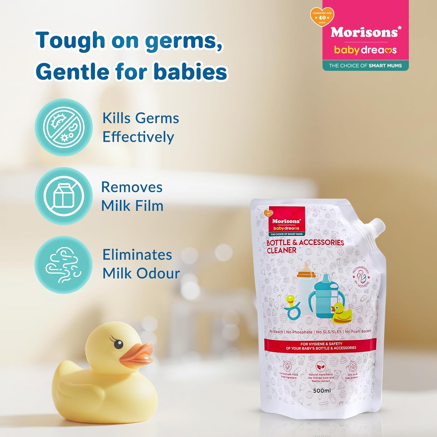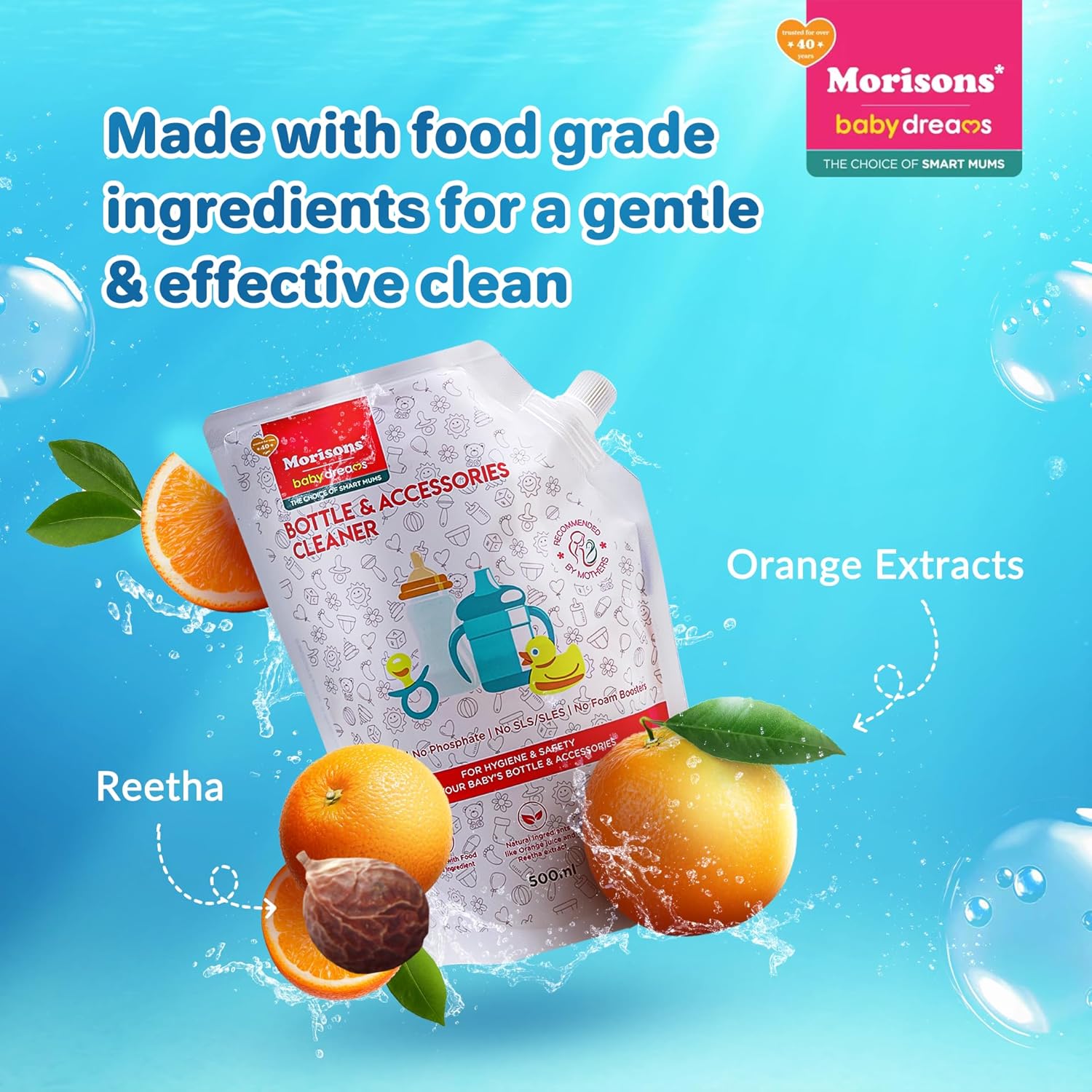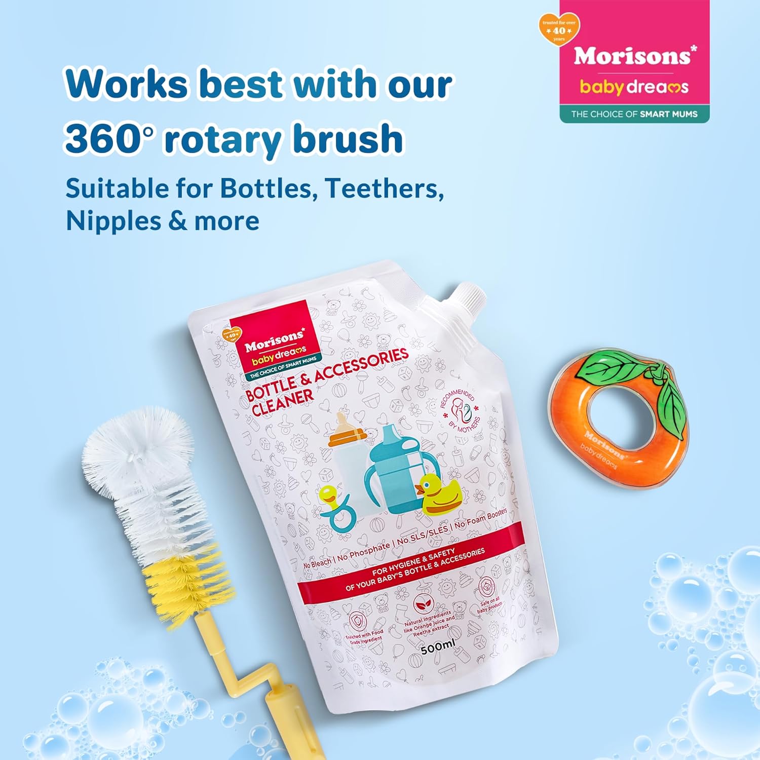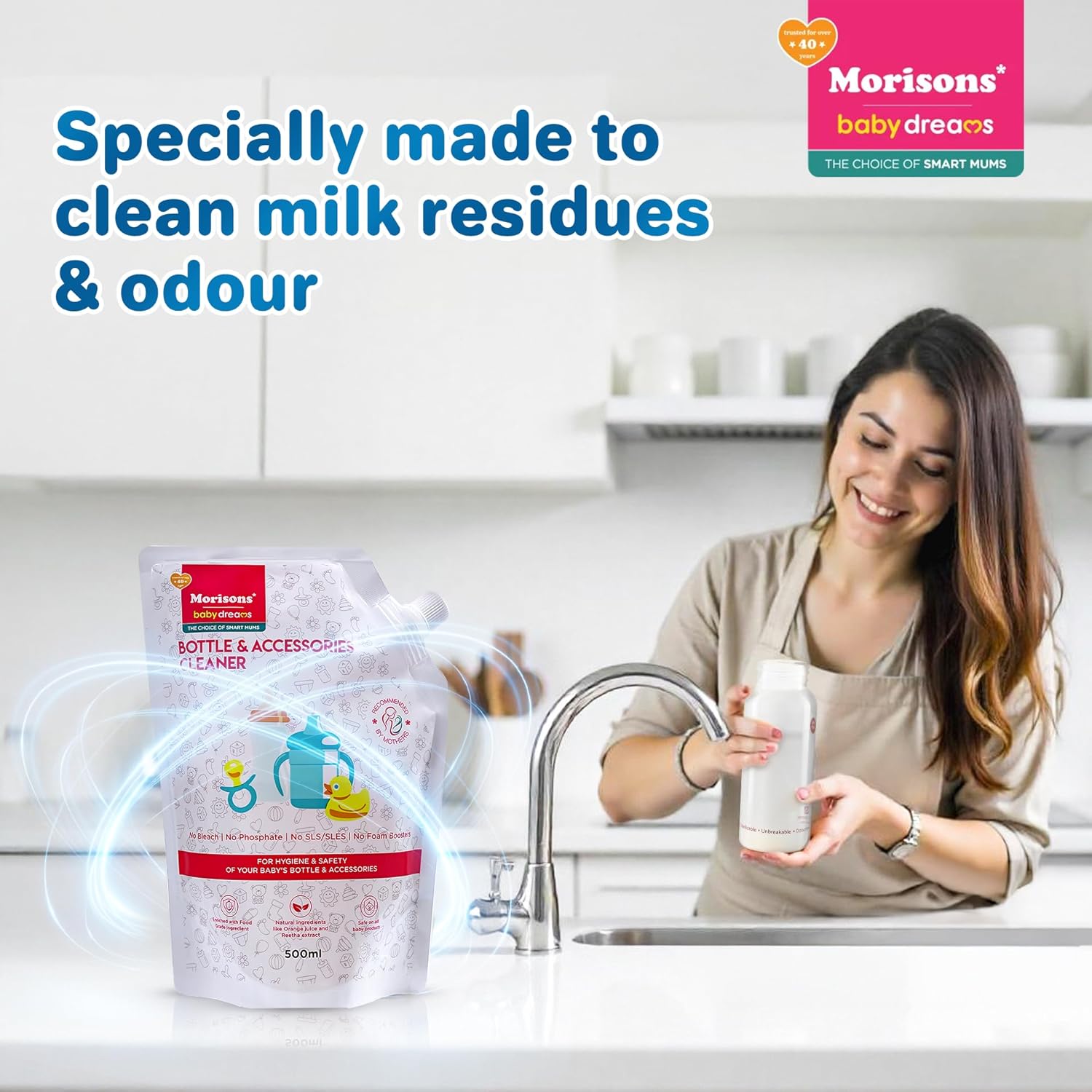 Morisons Baby Dreams Bottle & Accessories Cleaner – Refill Pack 500ml | Removes milk odour & stains effectively | Anti-bacterial | Made with Food Grade Ingredients I Contains