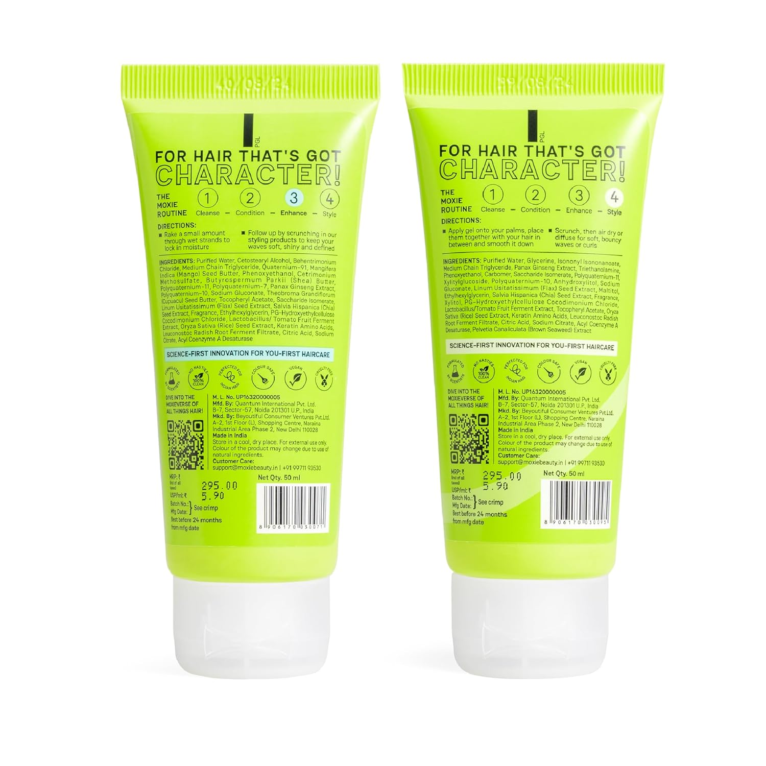 Moxie Beauty Wavy Vibe Setter Travel Duo | Enhances Wavy Hair & 94% Moisture Retention | Tackles Frizzy & Dry hair | Weightless Leave-In Conditioner (50ml) & Flexi Styling Serum Gel (50ml)