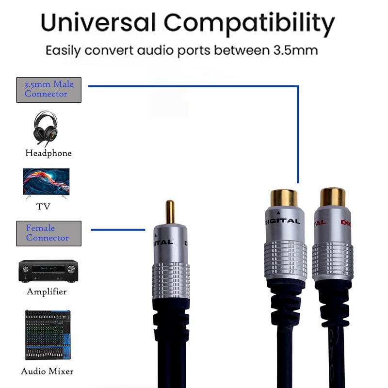 MX RCA Male to 2RCA Female Stereo Audio Cable Gold Plated Adapter Dual Shielded for Home Theater Amplifier Hi-Fi System Car Sound Speaker PARENT – 1.5 METERS