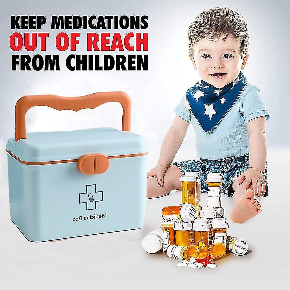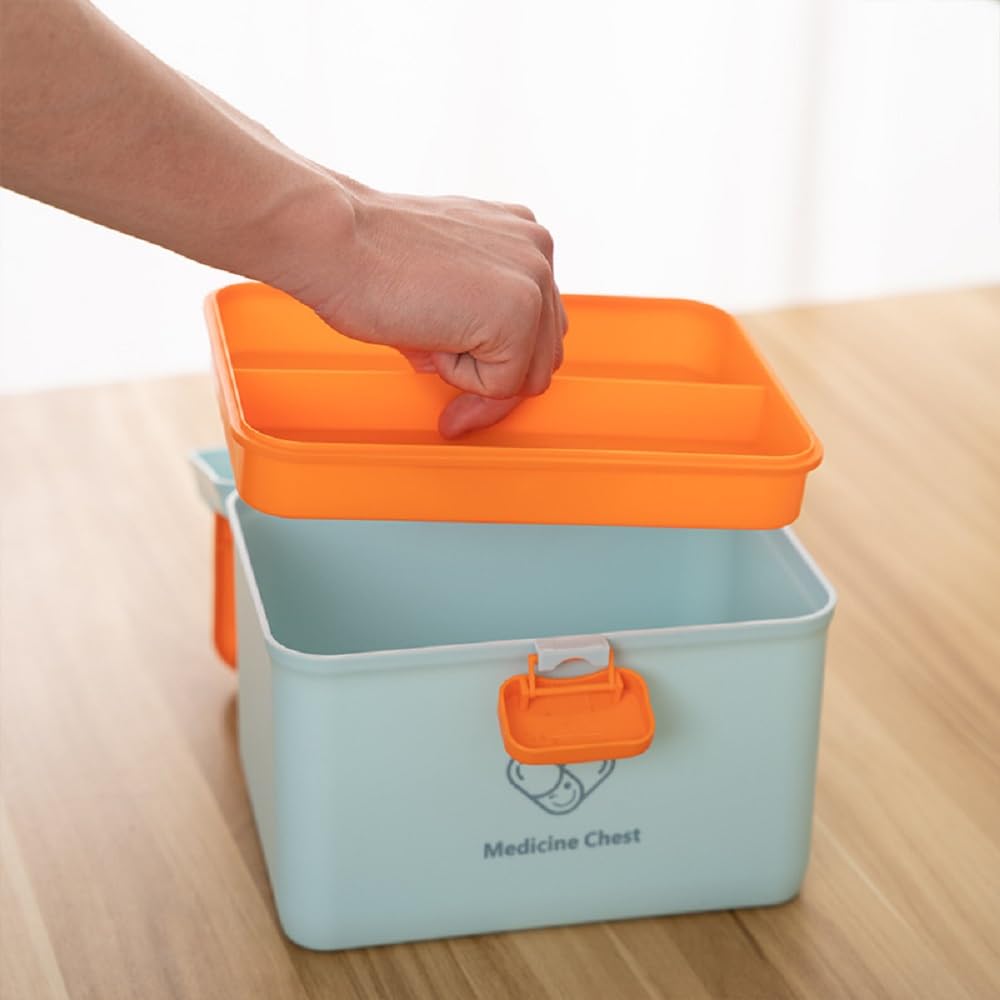 Naivete Plastic Rectangular Medicine Box, Medical Box, First aid Box, Multi Purpose Box, Multi Utility Storage with Handle, Medico First Aid Box Plastic (Blue and Light Orange)