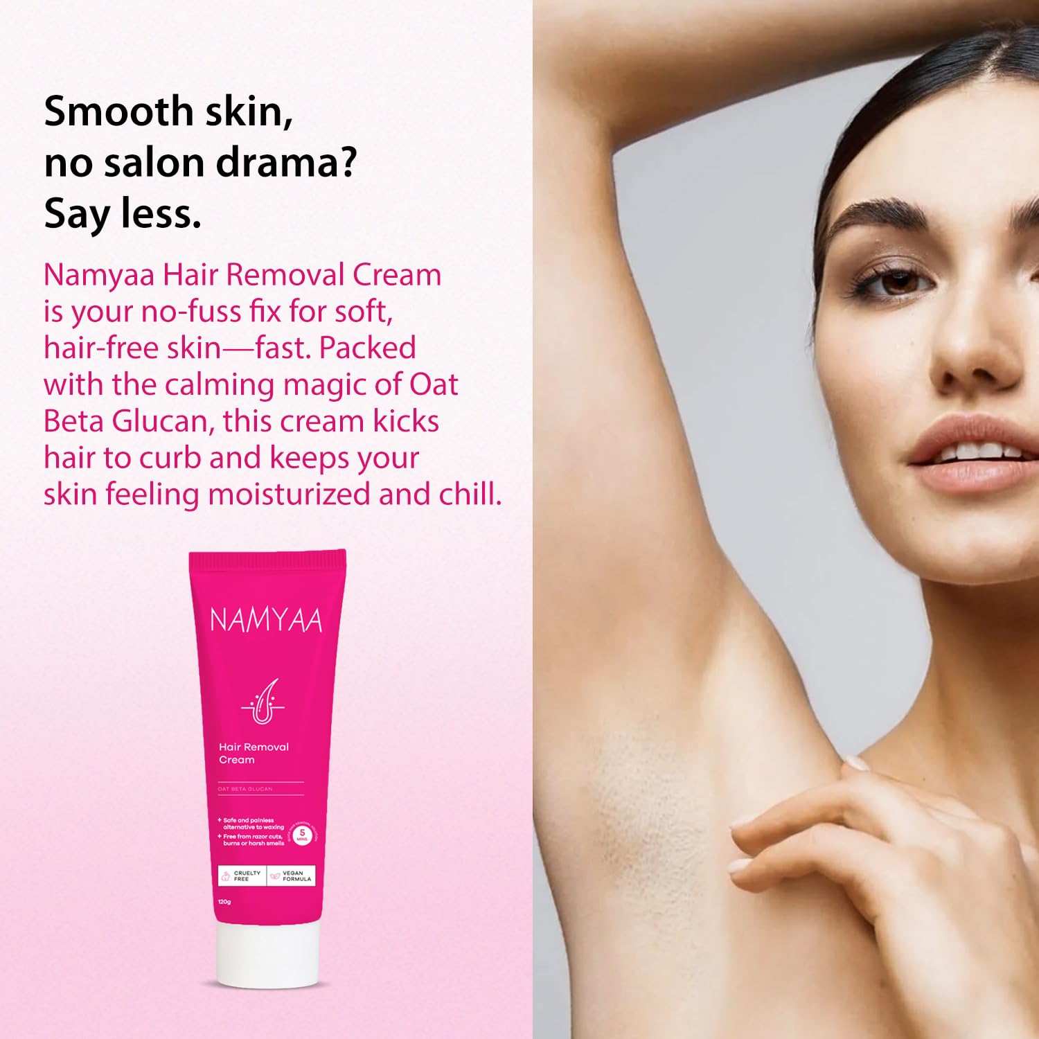 No Dark Patches: Namyaa Hair Removal Cream is gentle on the skin and prevents darkening due to chemical reaction.