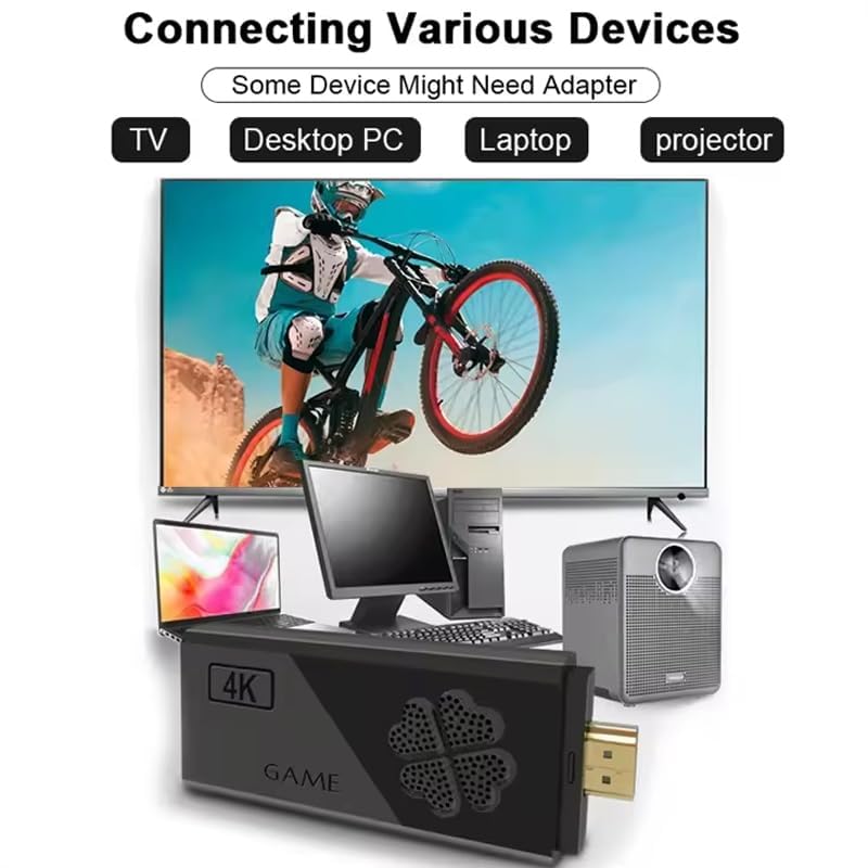 Experience nostalgic gaming with this versatile USB wireless game console stick that brings back the magic of classic video games. Featuring an impressive collection of 3000 built-in classic games from the golden age of 8-bit gaming, this console delivers hours of entertainment through crisp HDMI output in stunning 4K Ultra quality. The wireless design eliminates cable clutter, whilst the dual-player capability lets you share the fun with friends and family. Perfect for both casual gamers and retro enthusiasts, this plug-and-play system requires minimal setup – simply connect to your TV and start gaming. The compact, portable design makes it easy to carry your gaming library anywhere. The ergonomic controllers feature responsive buttons that recreate the authentic feel of classic gaming. Whether you’re revisiting childhood favourites or discovering classic titles for the first time, this console provides an accessible gateway to retro gaming entertainment.