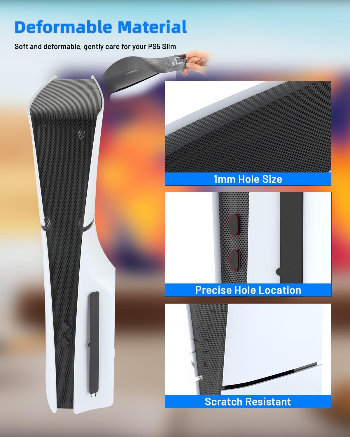 Lightweight and Durable: Dust Net for Play-station 5 Slim console is made from high-quality plastic material, offering a lightweight and durable solution. It can withstand daily use and friction, remaining intact and maintaining its shape, providing long-lasting dust protection for your console