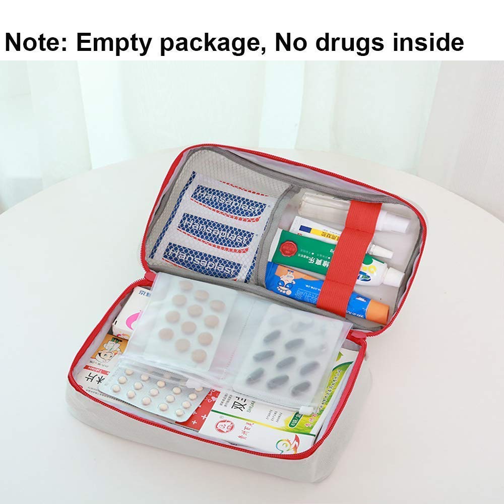 This is a pouch that can hold your medicines.The First Aid Pouch features a well sized compartment on the left and right side of the pouch.Empty first aid bag, you can put the emergency supplies medicines that you need.Can be carried by hands or hang on something surrounding you, plus can storage on your suitcase, won’t take up too much space.Full open zipper for easy pick-and-place items.