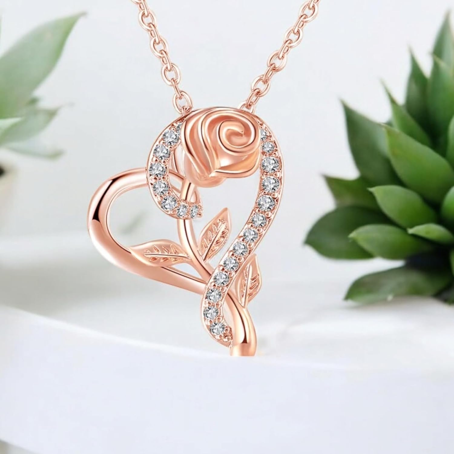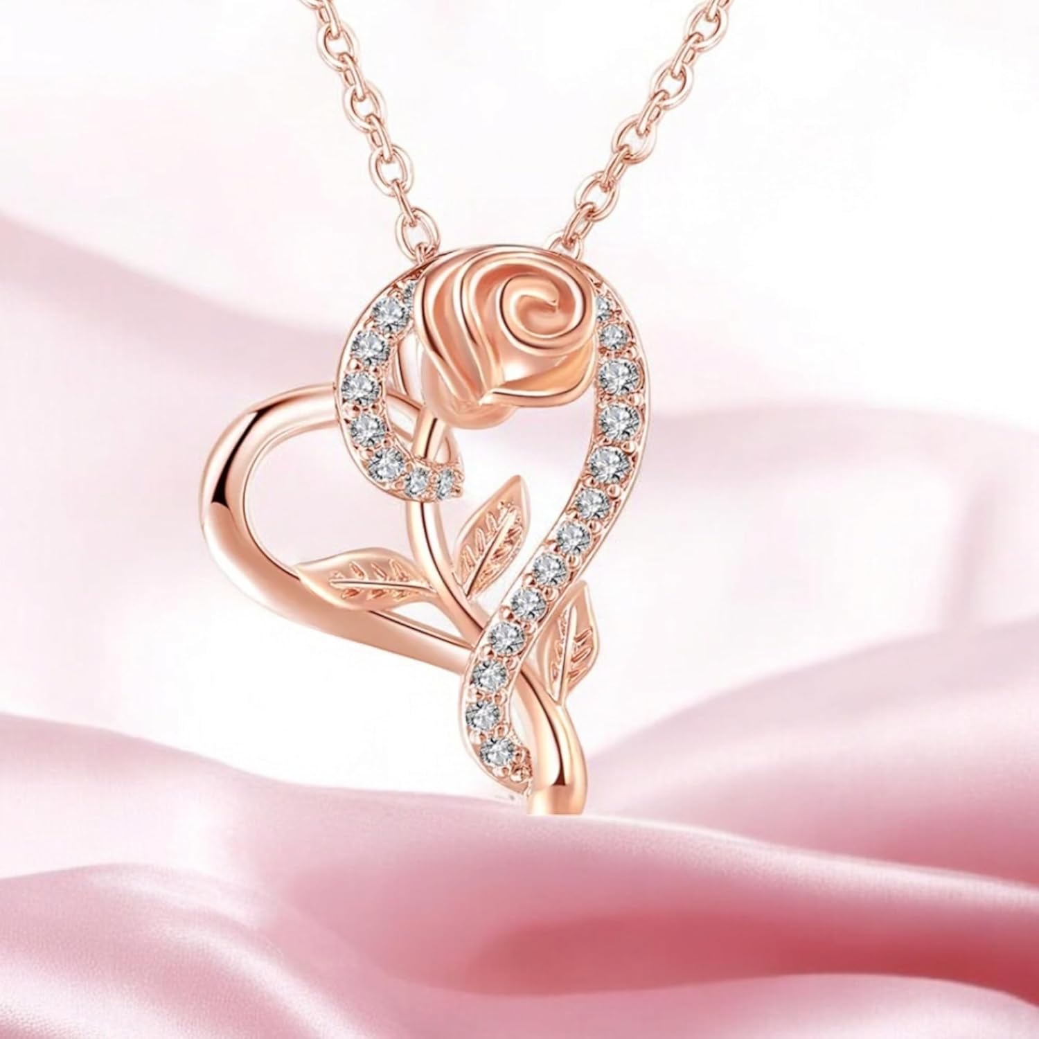 Nilu’s Collection Stylish CZ Chain Pendent Set for Women, Heart Shaped Pendant with Rose Design