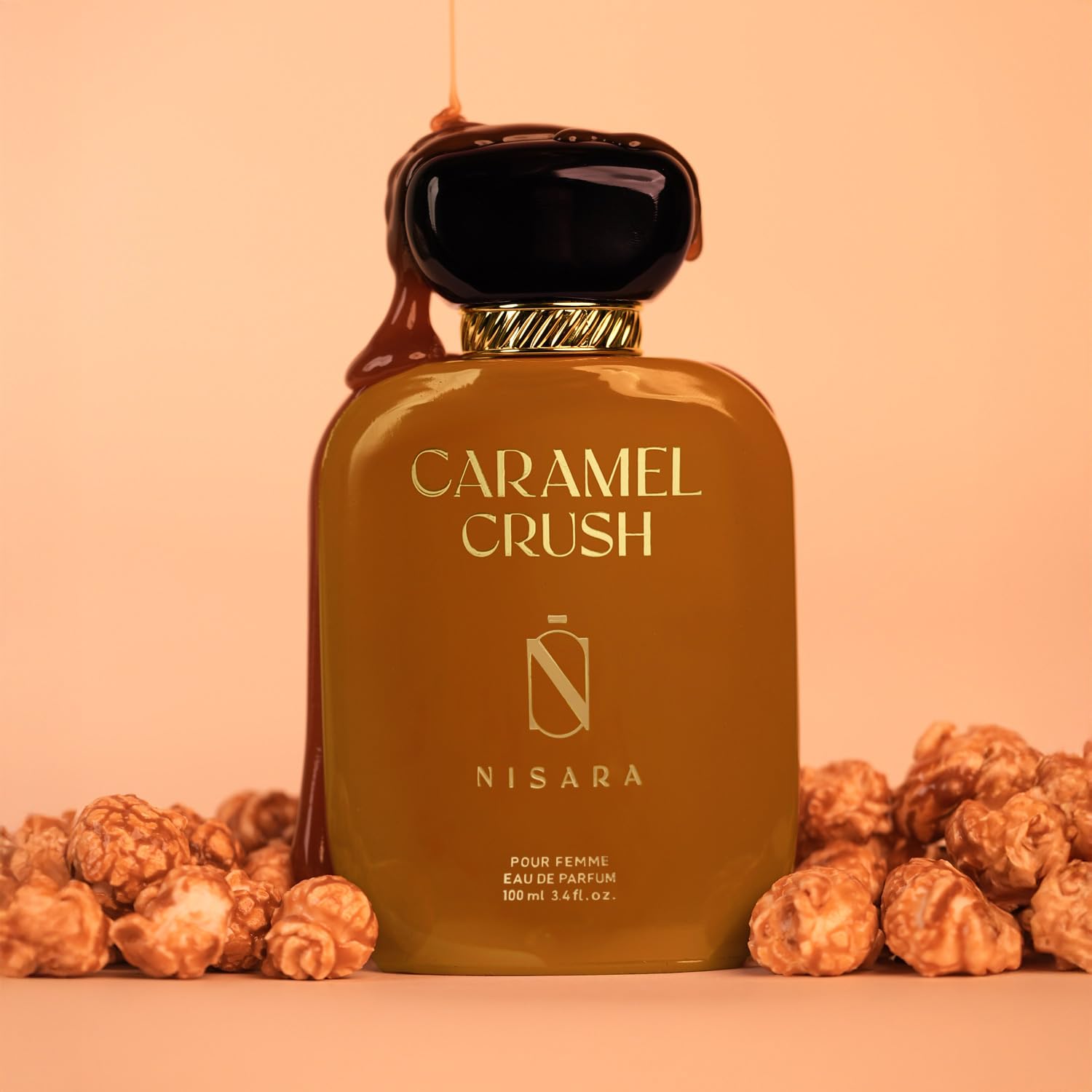 Nisara Caramel Crush Gourmet Perfume For Woman 100 ml | Long Lasting Eau De Parfum | Caramel Fragrance With | Caramel, Apple, Rose, Sugar, Vanilla | EDP Scent spray for Woman | Premium Perfume For Her