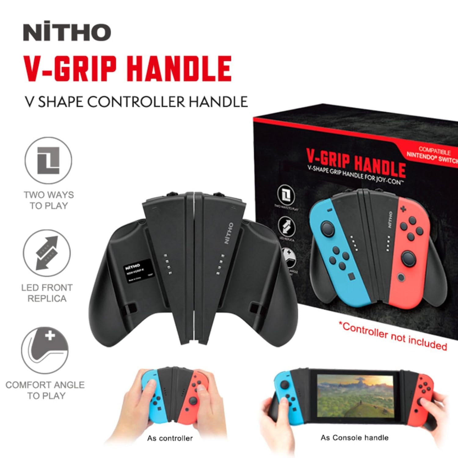 Nitho V-Grip Handle for Switch Joy-Con Controllers, Ergonomic Comfort Grip Bracket, Dual-Use Gamepad Holder for Tabletop or Handheld Mode, Wear Resistant V-Shaped Controller Grip, Black
