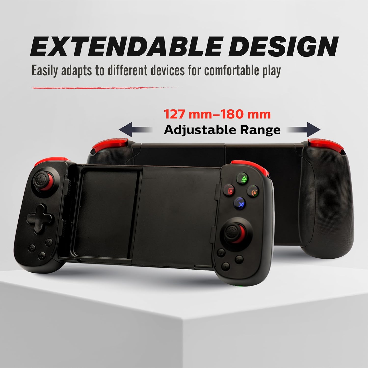 EXTENDABLE DESIGN: Adjustable telescopic grip extends from 127 mm to 180 mm, fitting a wide range of smartphones and handheld devices securely for a stable gaming experience on mobile