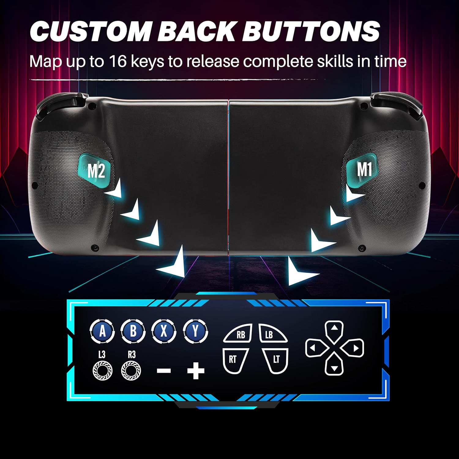 NITHO Wireless Mobile Gaming Controller for iOS & Android Phones, PC, Tablets, Switch | Full Size Adjustable, Customizable Back Buttons, Joystick for Cloud Gaming, PS Remote Play, Arcade MFI Games