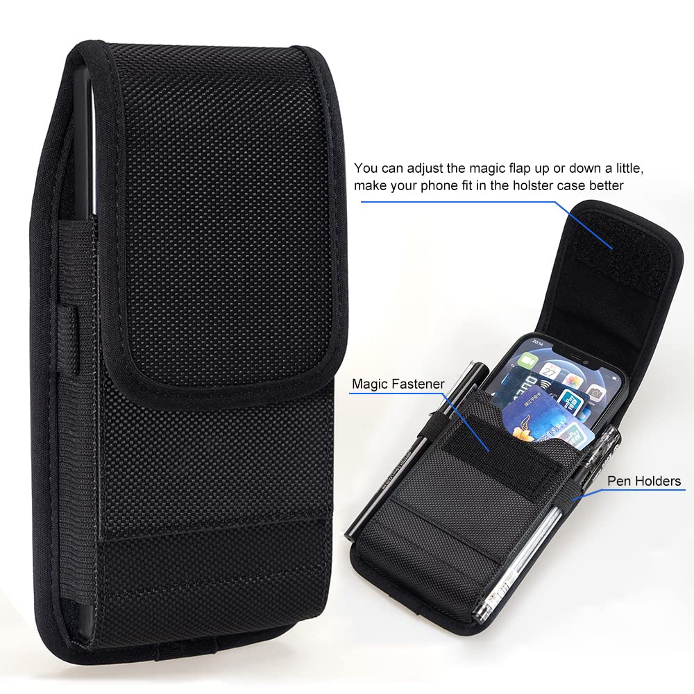 Nylon Cell Phone Holster Pouch Belt Clip Phone Case Holder for Samsung Galaxy A14 A13 A12 A03S A32 5G A23 S23 Ultra S22 Ultra S21 Ultra Note20 Ultra, Moto G Power 2021 2022 G Pure, TCL 30 SE Nokia G20