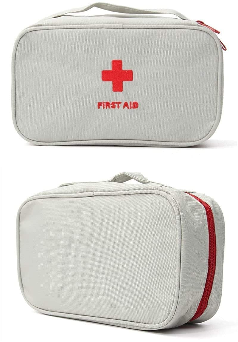 Nylon Travel Medicine Pouch Emergency First Aid Kit Pouchorganizer With Medicine-Pocket Empty Bag For Travelling Car, Home, Office, Grey