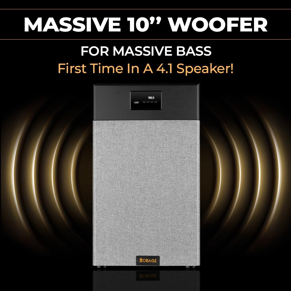 OBAGE Classic-10 4.1 Home Theatre System | 350W Peak Output | 10″ Woofer | Bluetooth 5.3, HDMI ARC, Optical in, USB, FM, AUX | Powerful Bass Surround Sound for TV, Music & Movies