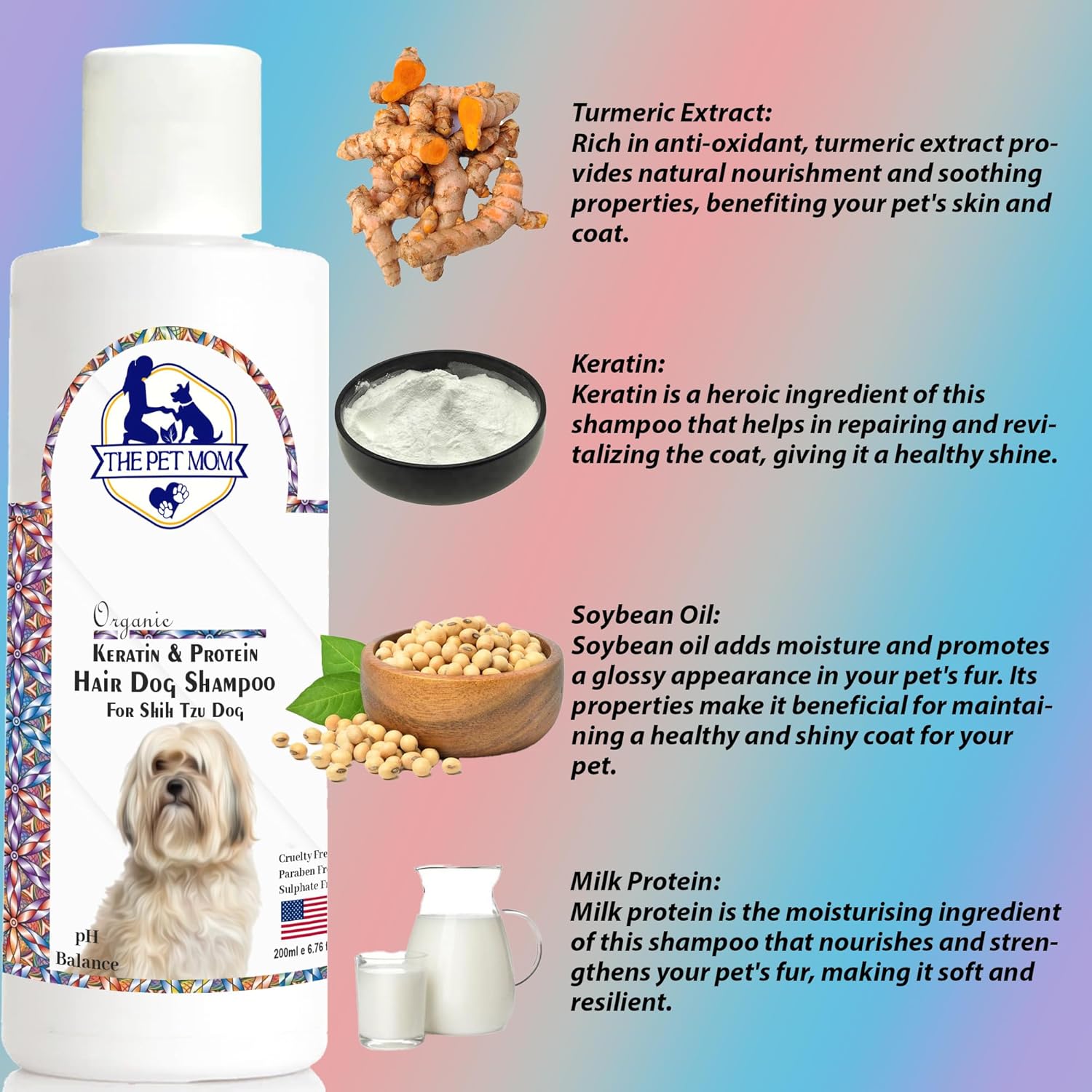 GENTLE & SAFE: The Pet Mom Organic Without any harmful ingredients, parabens and sulphates, this shih tzu dog shampoo is absolutely safe for your dog. Even the shampoo rinses out easy making it more safe for your pet’s sensitive skin.