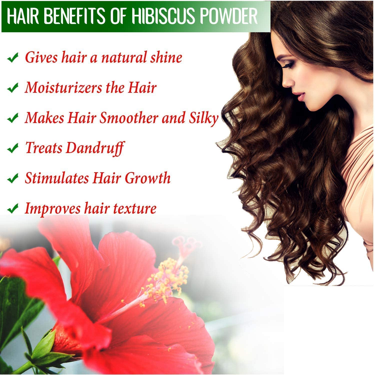 Package Contents: 100g Organic Raw Hibiscus Flower. It helps to condition your hair, making it soft and manageable.