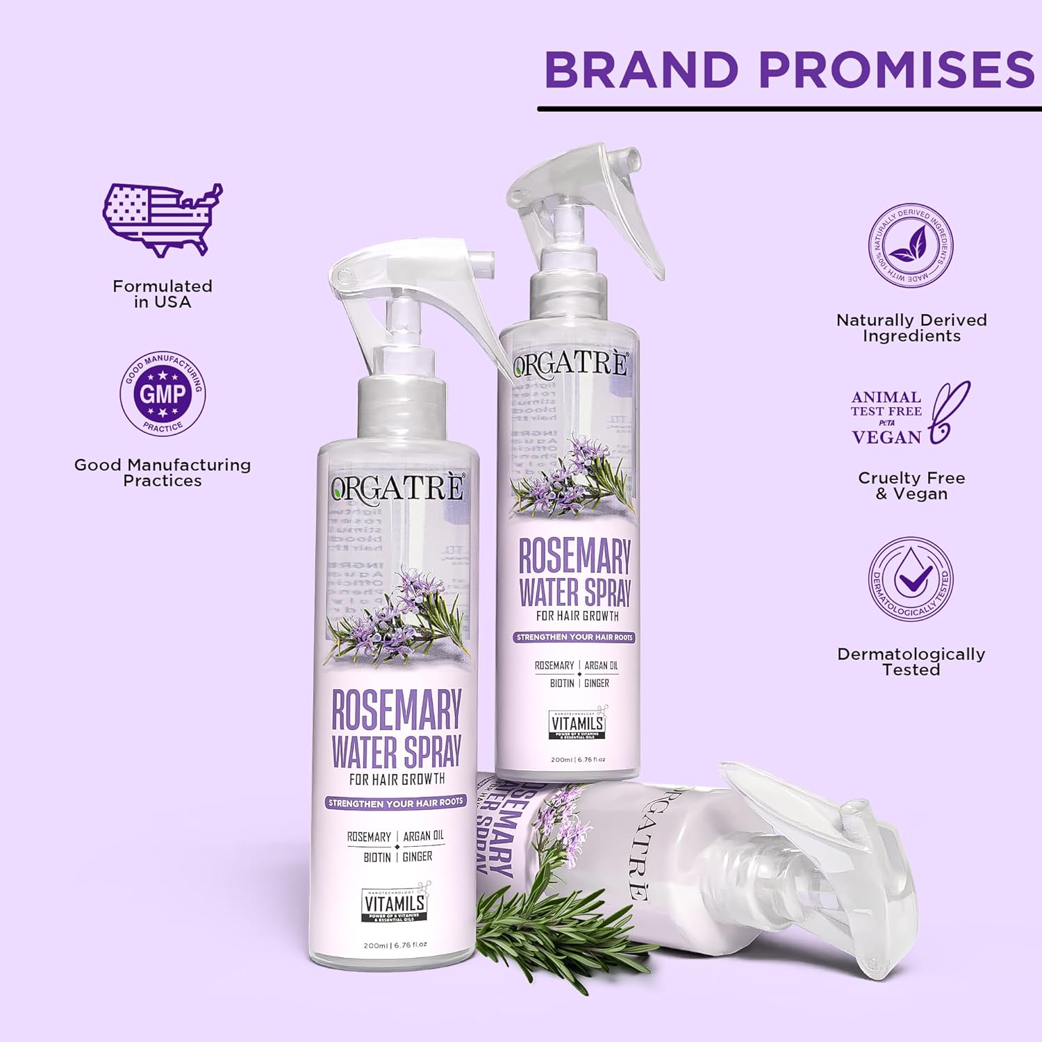 Orgatre Rosemary Water Spray for Hair Growth & Controls Hairfall with BIOTIN | Pure Natural Green Extraction Technologies | Controls Dandruff & Itchiness | Enhances Hair Texture & Shine | Non-Greasy & Fast Absorbing | 200 ml