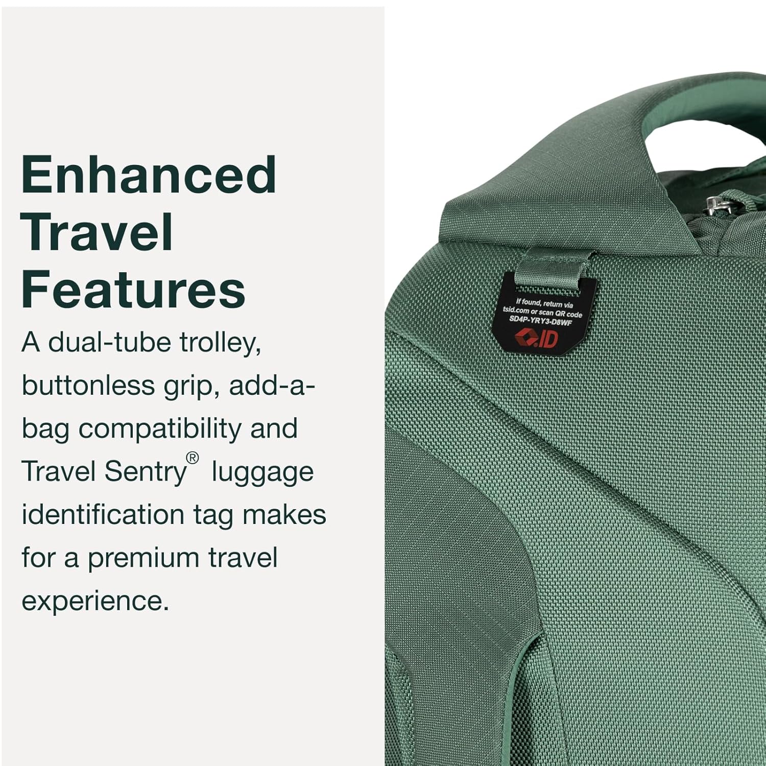 Retractable ErgoGrip Handle – Lightweight yet strong aluminum frame and ergonomic handle system make maneuvering this rolling suitcase simple, even when heavy