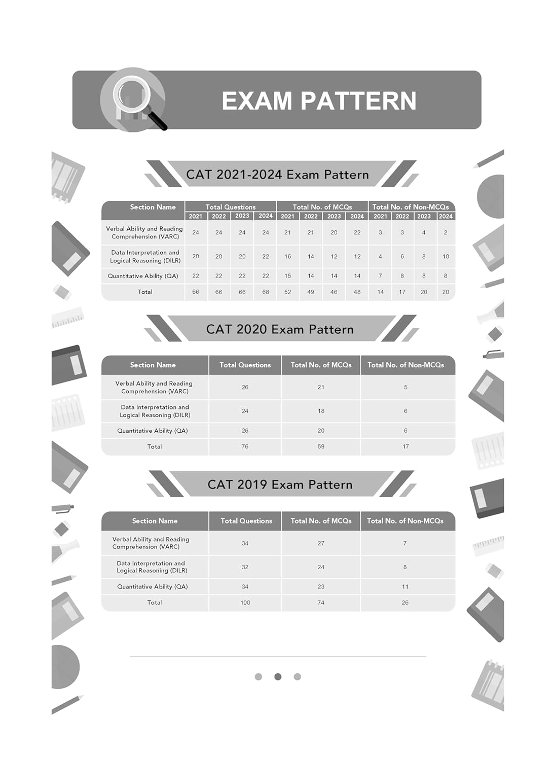 100% Updated with 2024 Papers (Shift1 to 3) Fully Solved Extensive Practice with 2200+ Chapter-wise Practice Questions & 3 Sample Question Papers Crisp Recap with Smart Mind Maps, Mnemonics & Concept Videos Valuable Exam Insights with Tips, Tricks & Shortcuts to ace CAT in 1 st attempt Concept Clarity learn key concepts through Revision Notes & Smart Shortcuts 100% Exam Readiness with Previous Years’ Subjective Trend Analysis