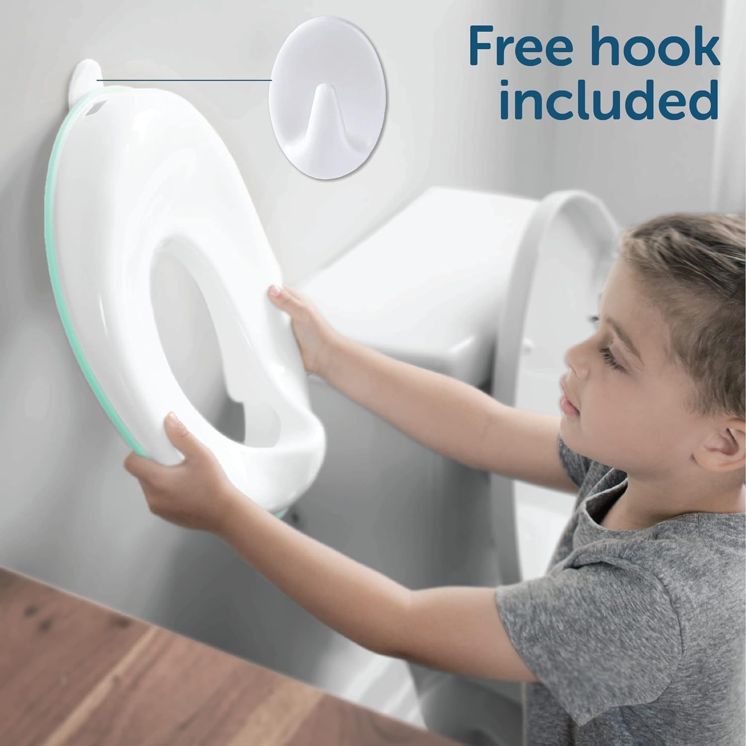 Every mom knows you always need that training seat handy for last-minute bathroom runs. A damage-free adhesive hook is included for easy storage so you always know where your potty is.