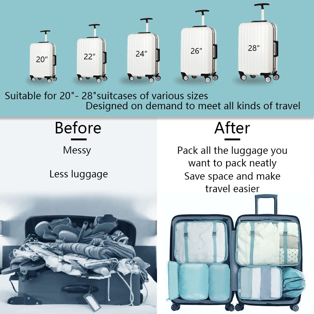 Packing Cubes 8 set Travel Packing Luggage Suitcases Organizers Bag,Large Lightweight Waterproof Storage Bag,Carry On Travel Gear Toiletries Cosmetic Clothes Shoe Bag(B Blue), Nylon
