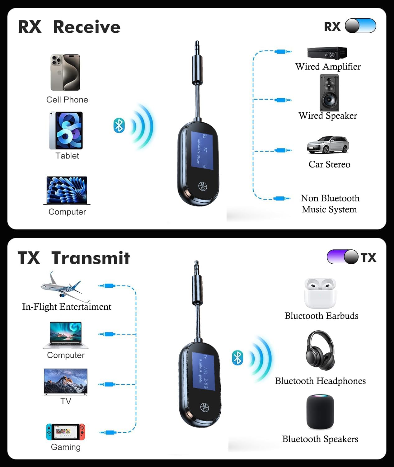 Pagaria 2 in 1 Handsfree LCD Display V5.3 Bluetooth Transmitter Receiver with 3.5mm Aux, for TV, Home Stereo, in-Flight, Headphones, Speakers, Model: T13