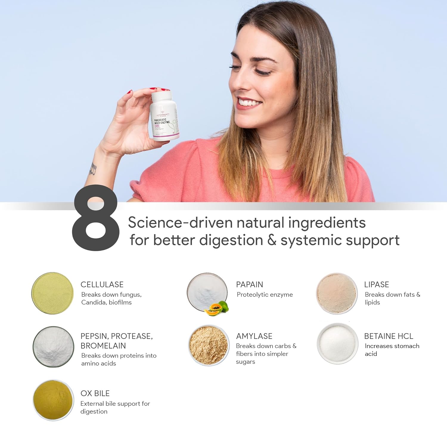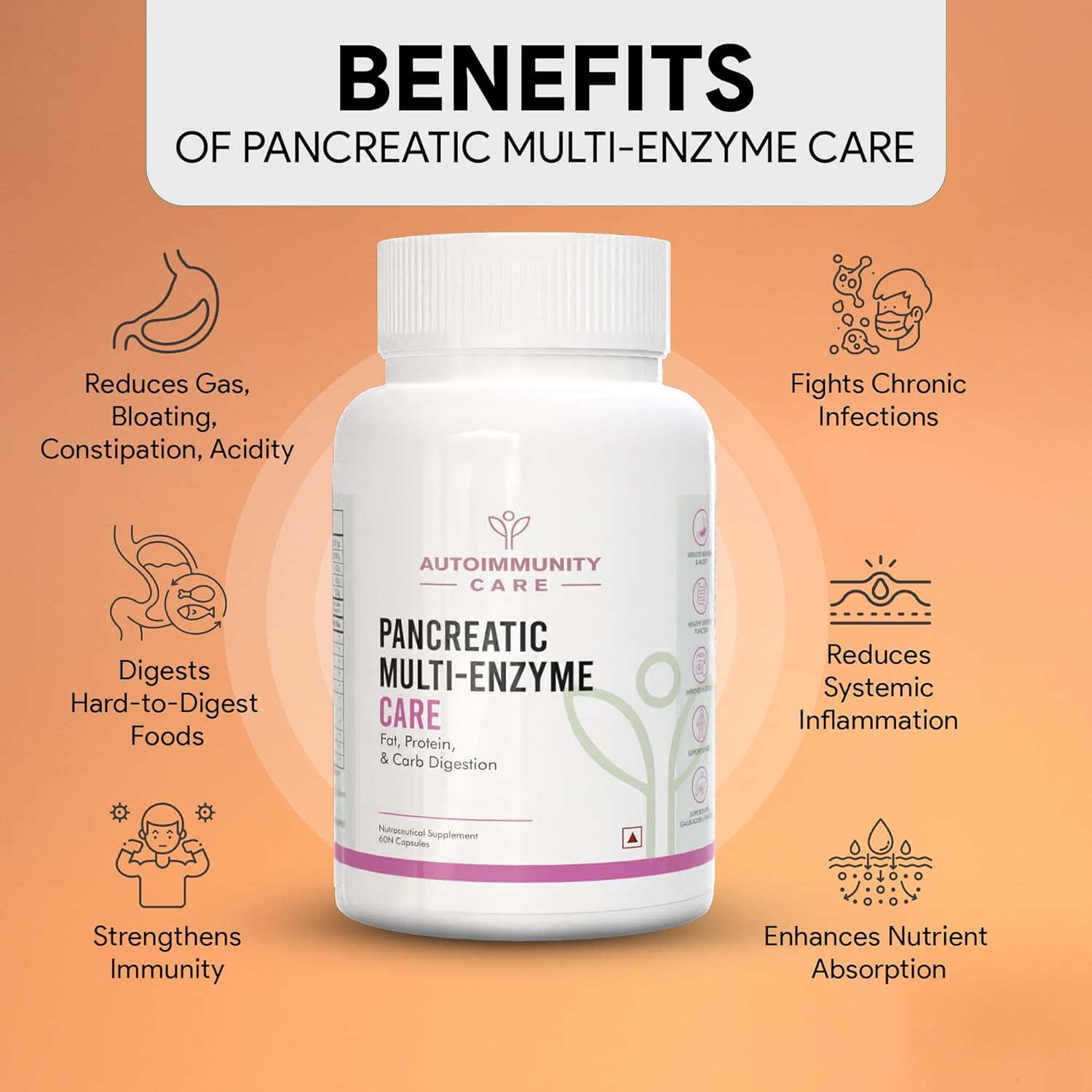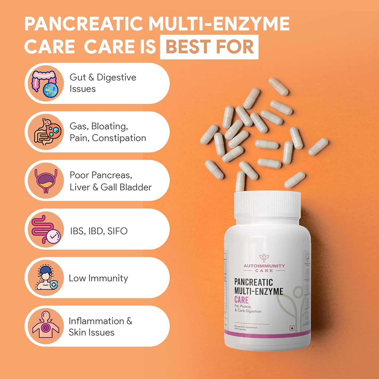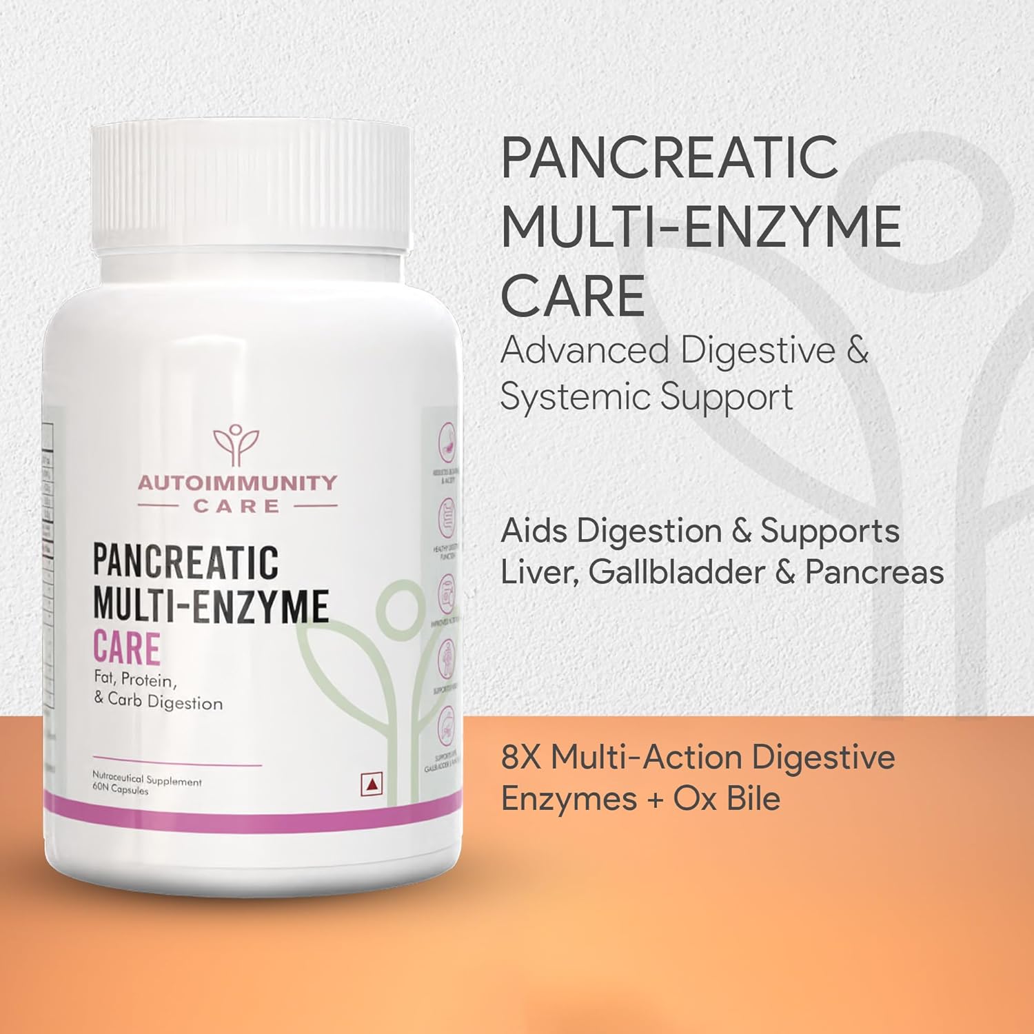PANCREATIC MULTI-ENZYME CARE | Advanced Digestive Enzymes – Blend of Systemic & Digestive Enzymes to Aid Digestion & Support Pancreas, Liver & Gall bladder support l Gut Health Support with 8X Multi-Action Digestive Enzymes + Ox Bile l 60 Capsules