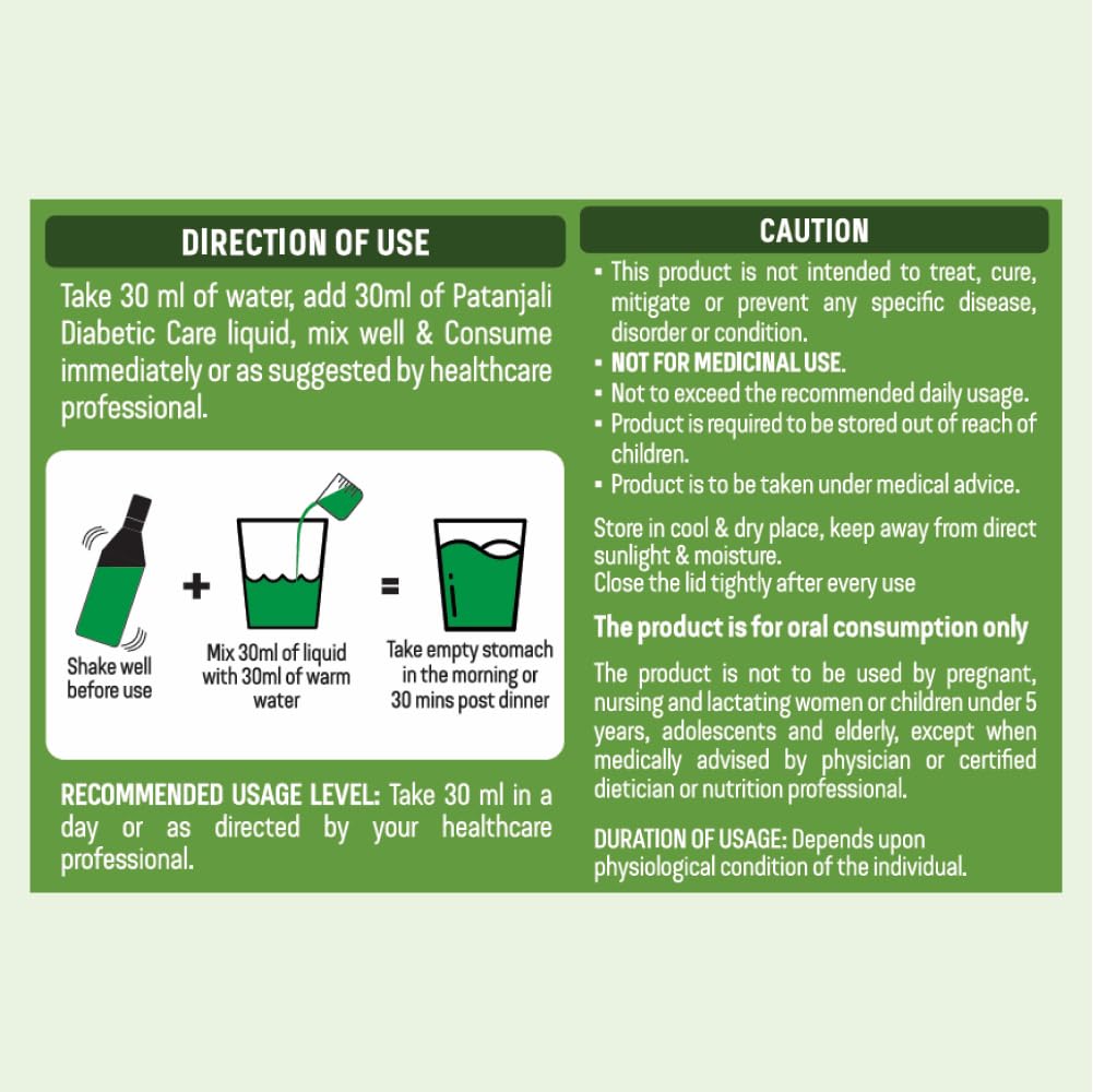DAILY SUPPORT FOR BLOOD SUGAR CONTROL: Patanjali Diabetic Care Liquid is an Ayurvedic diabetes supplement made with 7 proven herbs to help balance sugar levels and support healthy insulin activity.