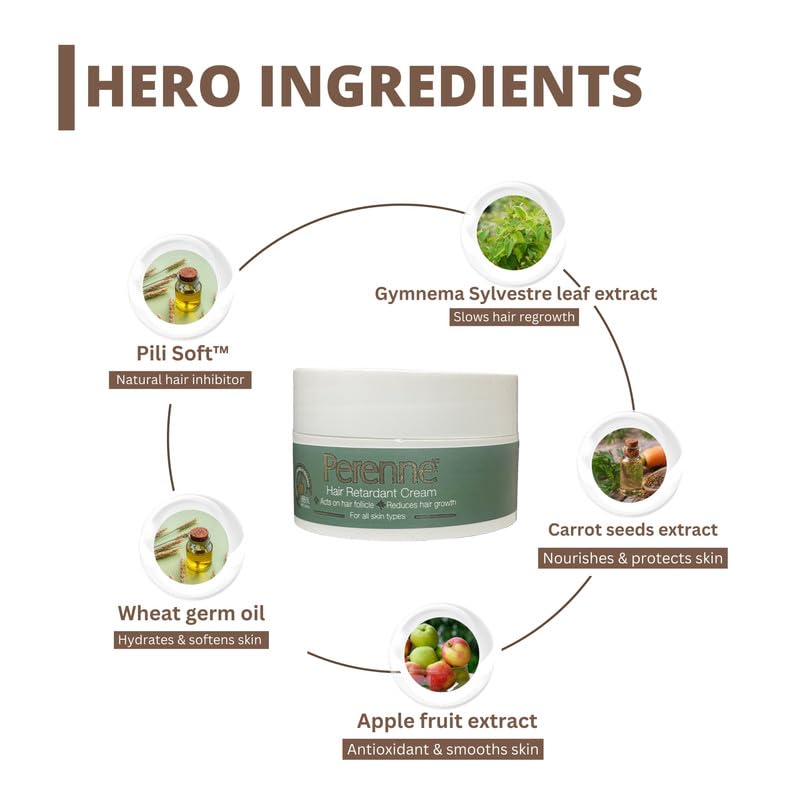 PERENNE Unisex Adult Hair Retardant Cream (50 Gm) | For Reducing Facial Hair And Other Body Parts| Natural | Paraben Free