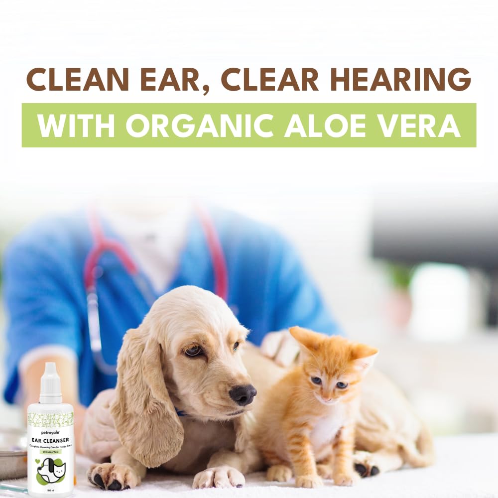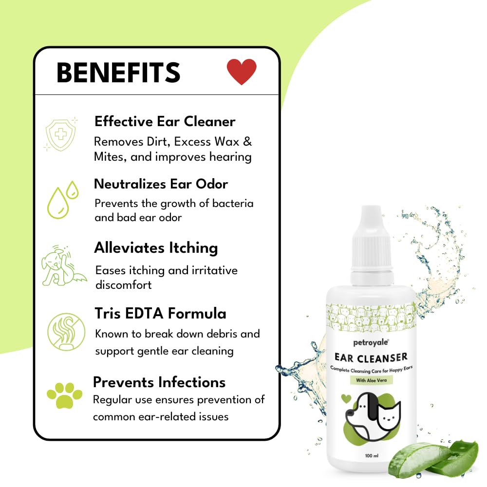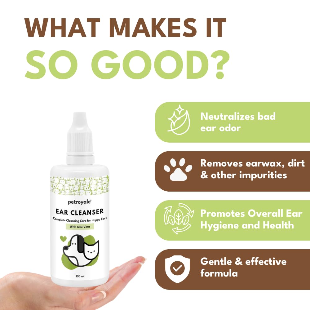 Petroyale Ear Cleanser for Dogs and Cats | Effective & Gentle Formula | Remove Dirt, Excess Wax, Mites | Improves Hearing | Relives Itching | Dog Ear Cleaner Solution with Tris EDTA Buffer – 100ml