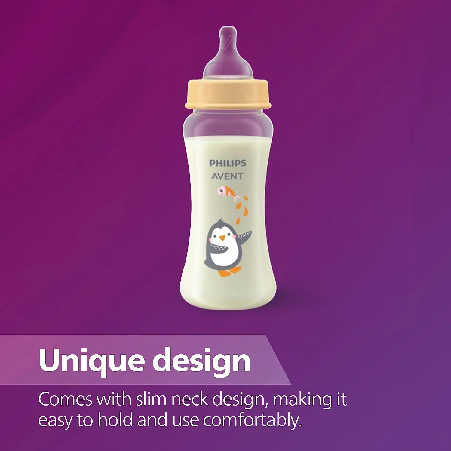 Philips Avent Grow- Economy Feeding Bottles | Anti-Colic | Easy Fill,Easy Clean|BPA Free | with 1M+ Flow Teat | Made in India | SCF061/02 (250ml, Pack of 2) (Penguine with Beach Ball)