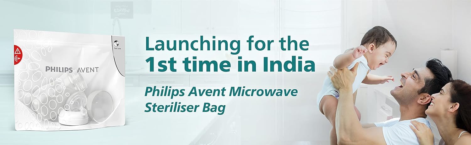 “Microwave steam sterilizing Bags”. Launching 1st time in India, this bag comes with easy, convenience and effectiveness of Sterilizing at an attractive price.Phillips Avent Microwave Sterilising Bag For Baby.