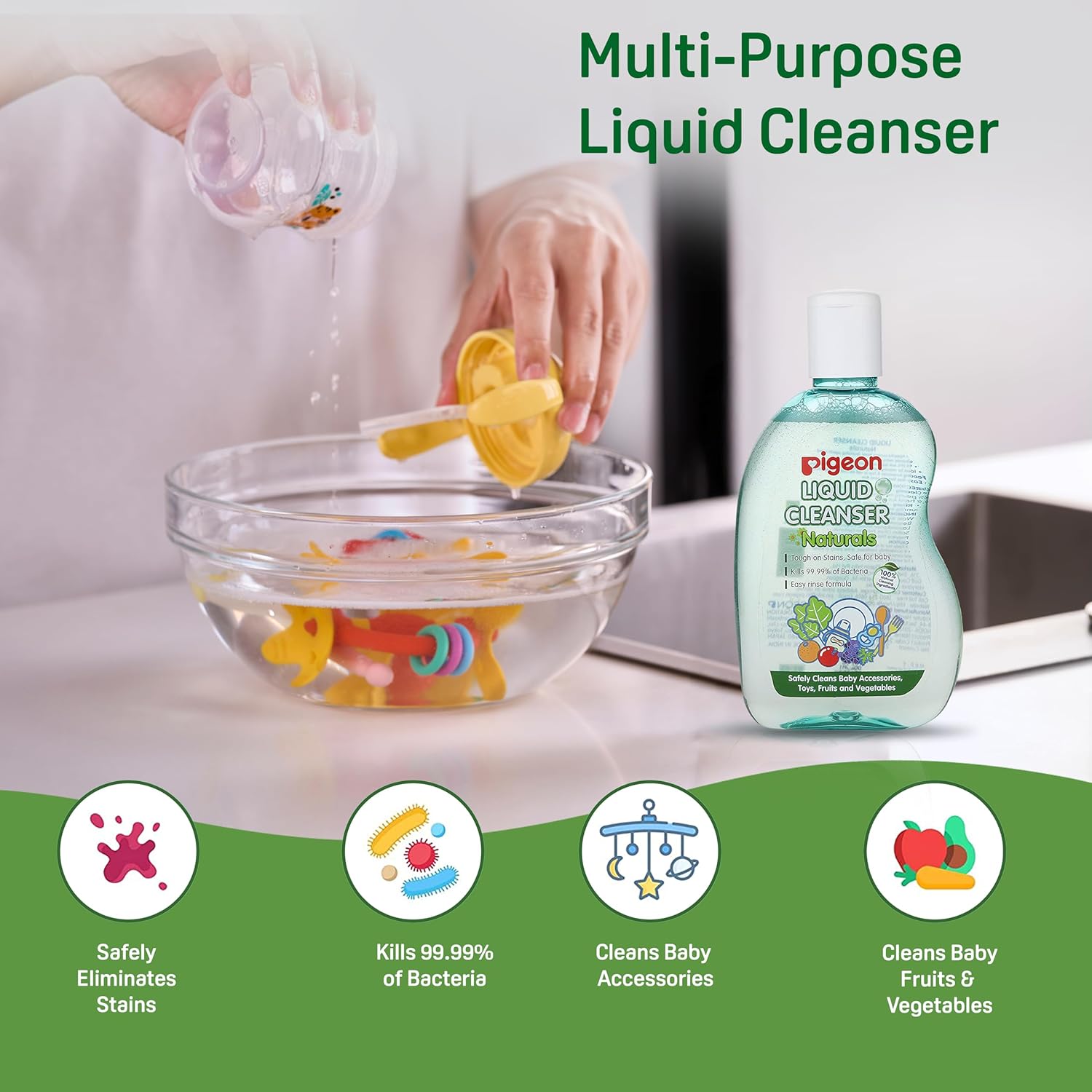 Pigeon Liquid Cleanser Bottle, 200 ml (Green)