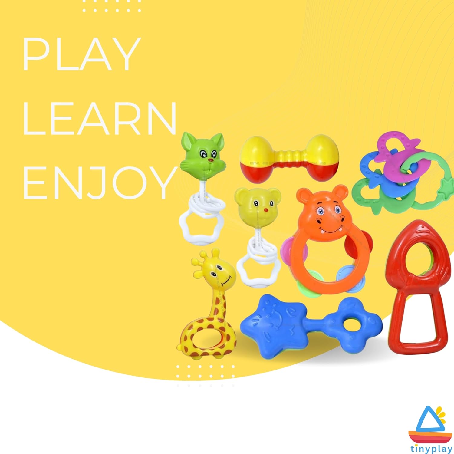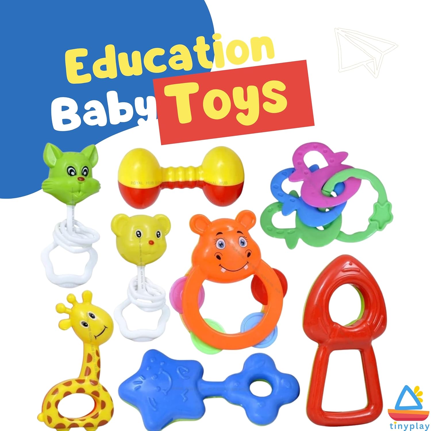 🌈 8 Pcs Colorful Rattle Set for Baby Boys & Girls TinyPlay baby rattles set includes 8 vibrant, differently shaped rattle toys for boys and girls aged 0-6 months and 6-12 months. Designed to be visually stimulating and baby-friendly (Multicolor).