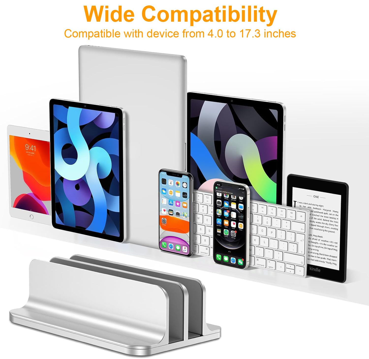 PLIXIO Dual Vertical Laptop Stand – Adjustable Dock Holder for 2 Devices (Up to 17.3″) | Aluminum Desktop Organizer for MacBook, Dell, HP, Surface, Chromebook, Samsung – Silver