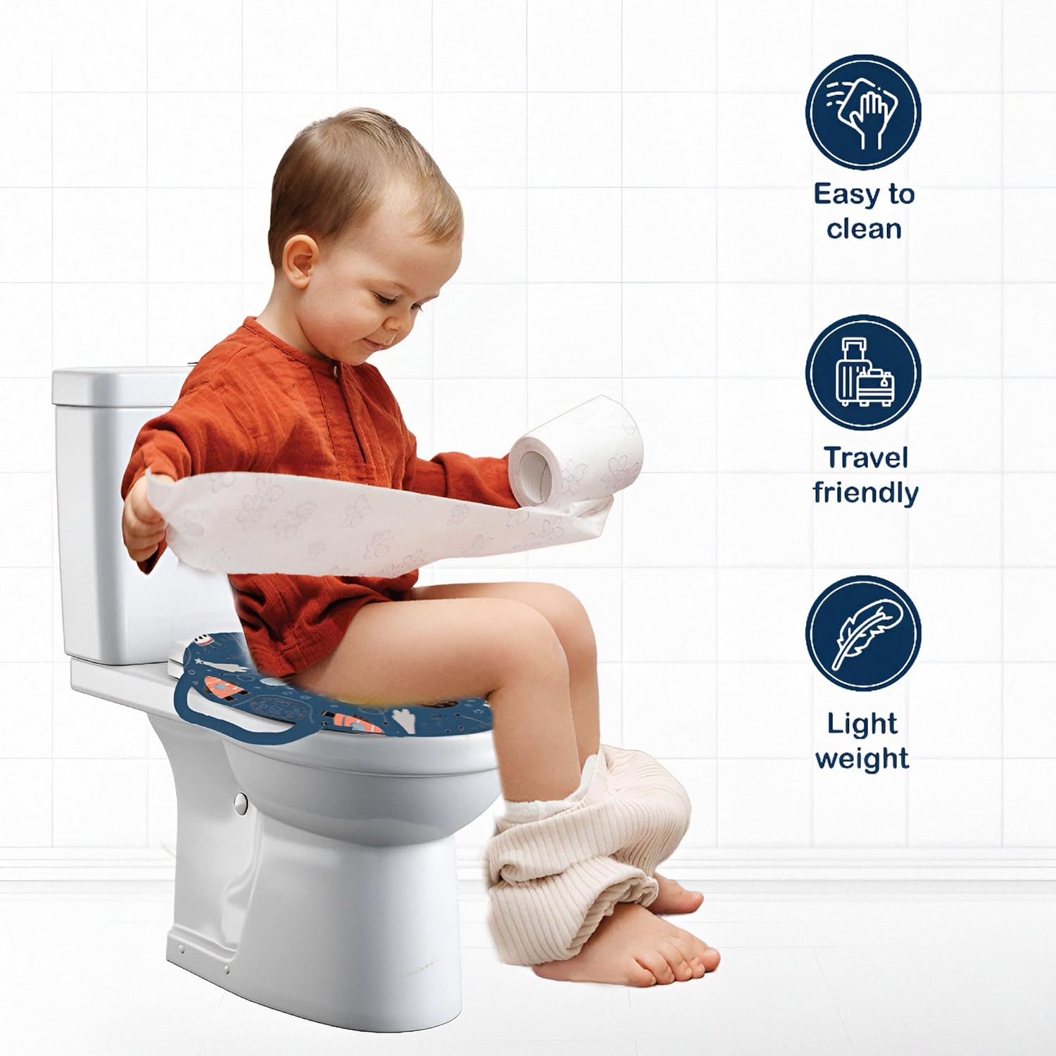 POLKA TOTS Plastic Space Design Blue Potty Seat With Handle For Extra Comfort, Suitable For Potty Training Of Babies, Kids & Toddlers