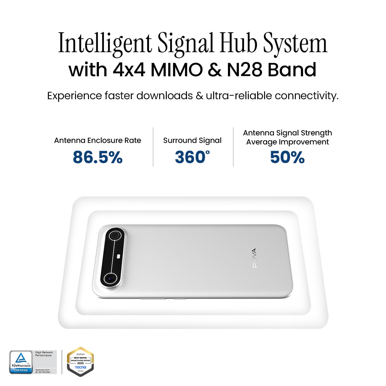 4×4 MIMO Support : Enjoy faster, stronger, and more stable connectivity with 4×4 MIMO support, delivering enhanced signal strength and better data speeds even in low-network areas.