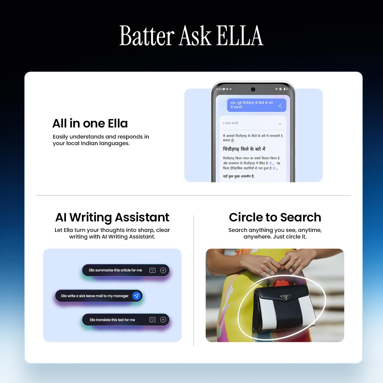 Ella AI with Indian Regional Language Support : Smarter, more human, and made for India—Ella AI understands your voice in your language, delivering an experience that feels truly yours.