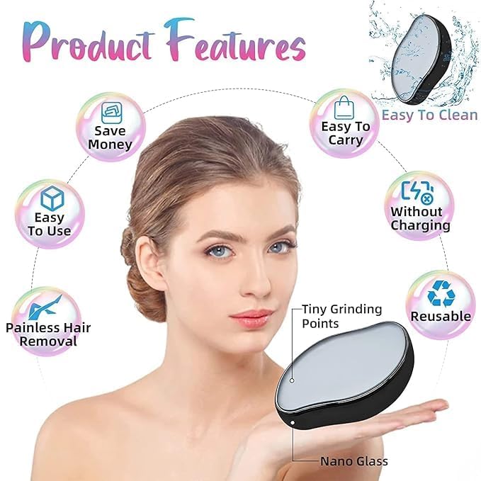 Premium Reusable Crystal Hair Remover for Women and Men | Upgraded Nano-crystalline Dots Technology Crystal Painless Hair Eraser Remover for Women | Hair Removal Tool