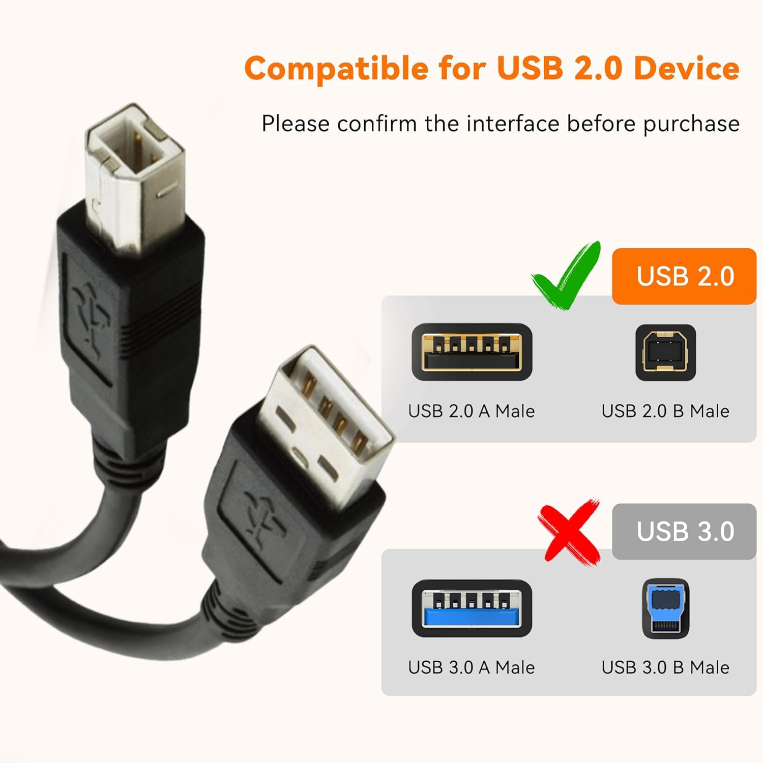 ✅ Compatible with All Major Brands – Perfect for use with HP, Canon, Epson, Brother, and other USB 2.0 printer-enabled devices.